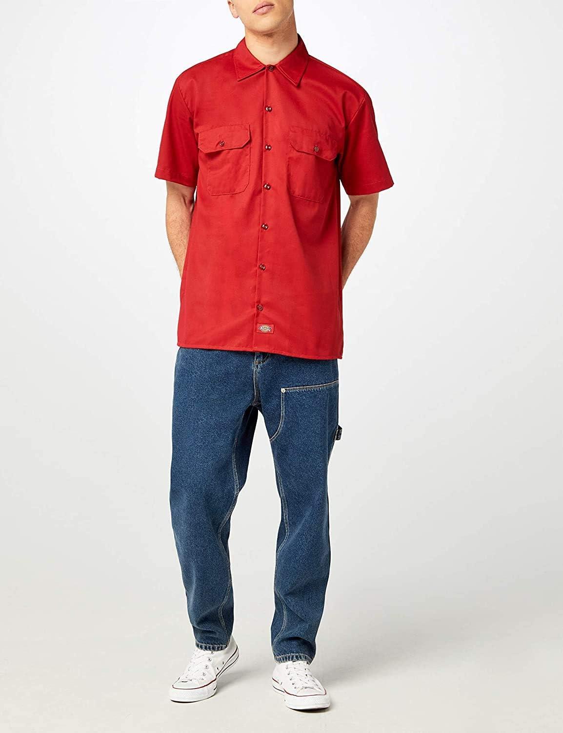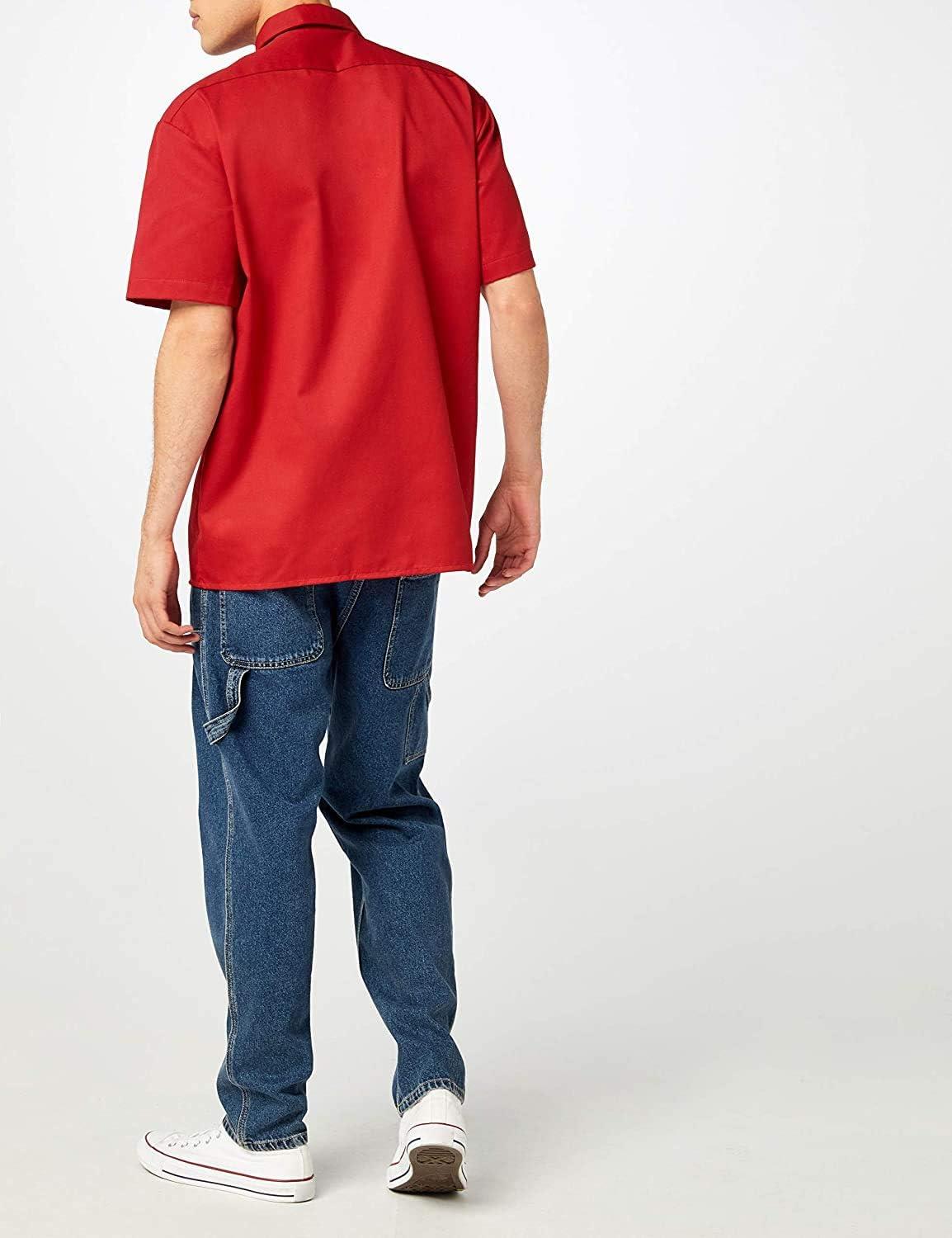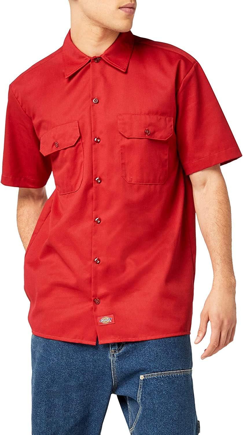 Dickies Men’s Short Sleeve Work Shirt – Durable Twill Button Down Shirts for Men, Lightweight Uniform for Daily Wear(English Red Heather V1)