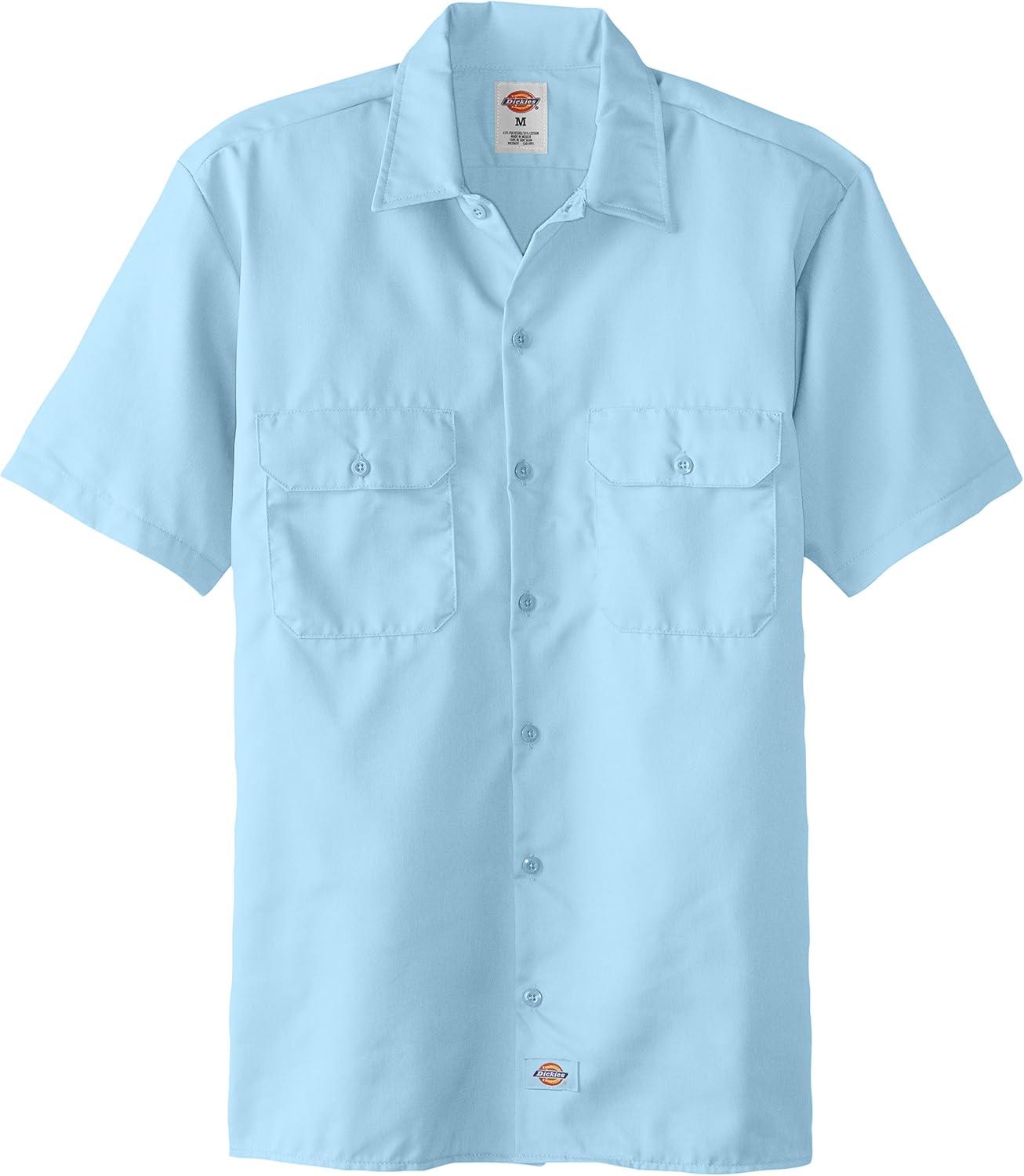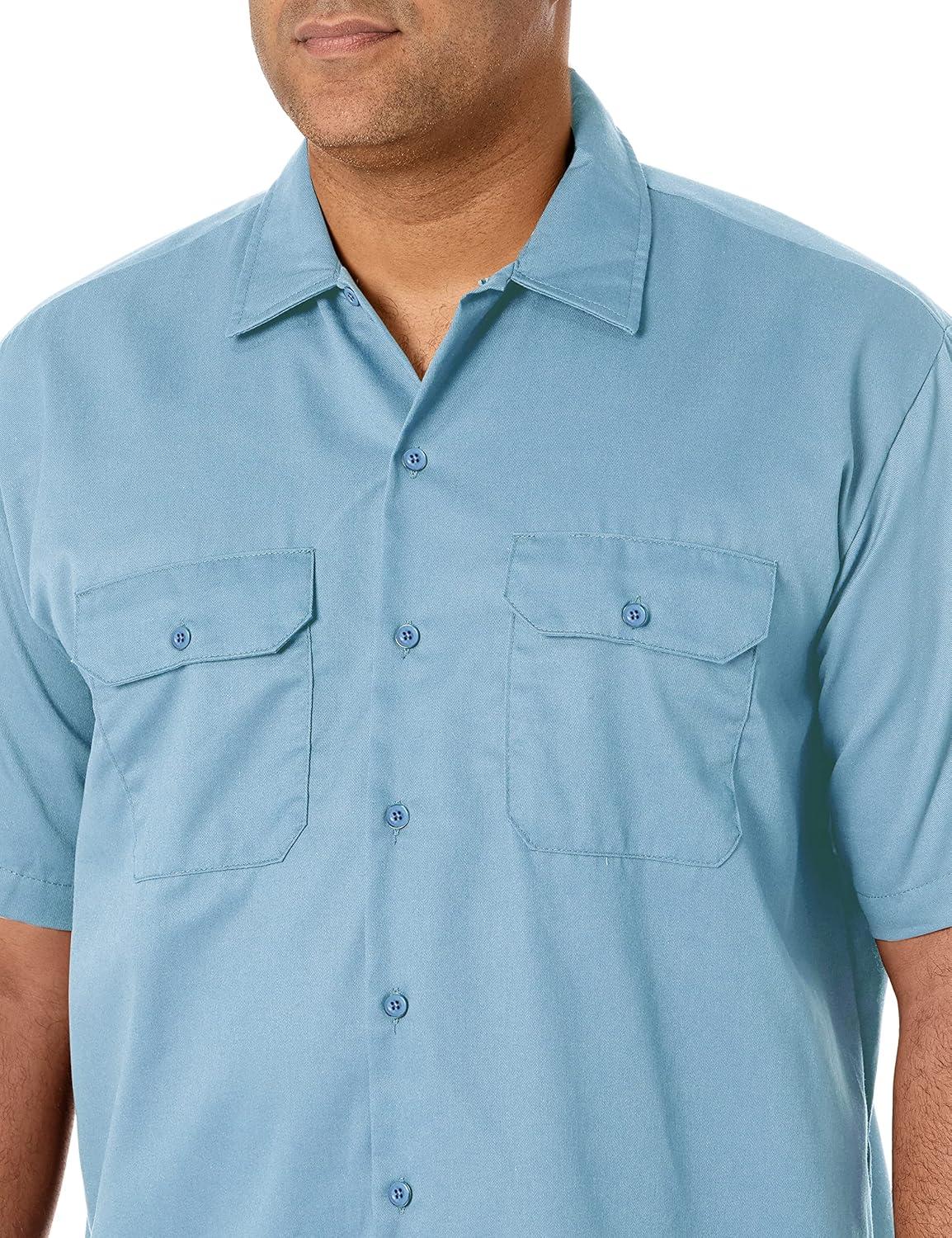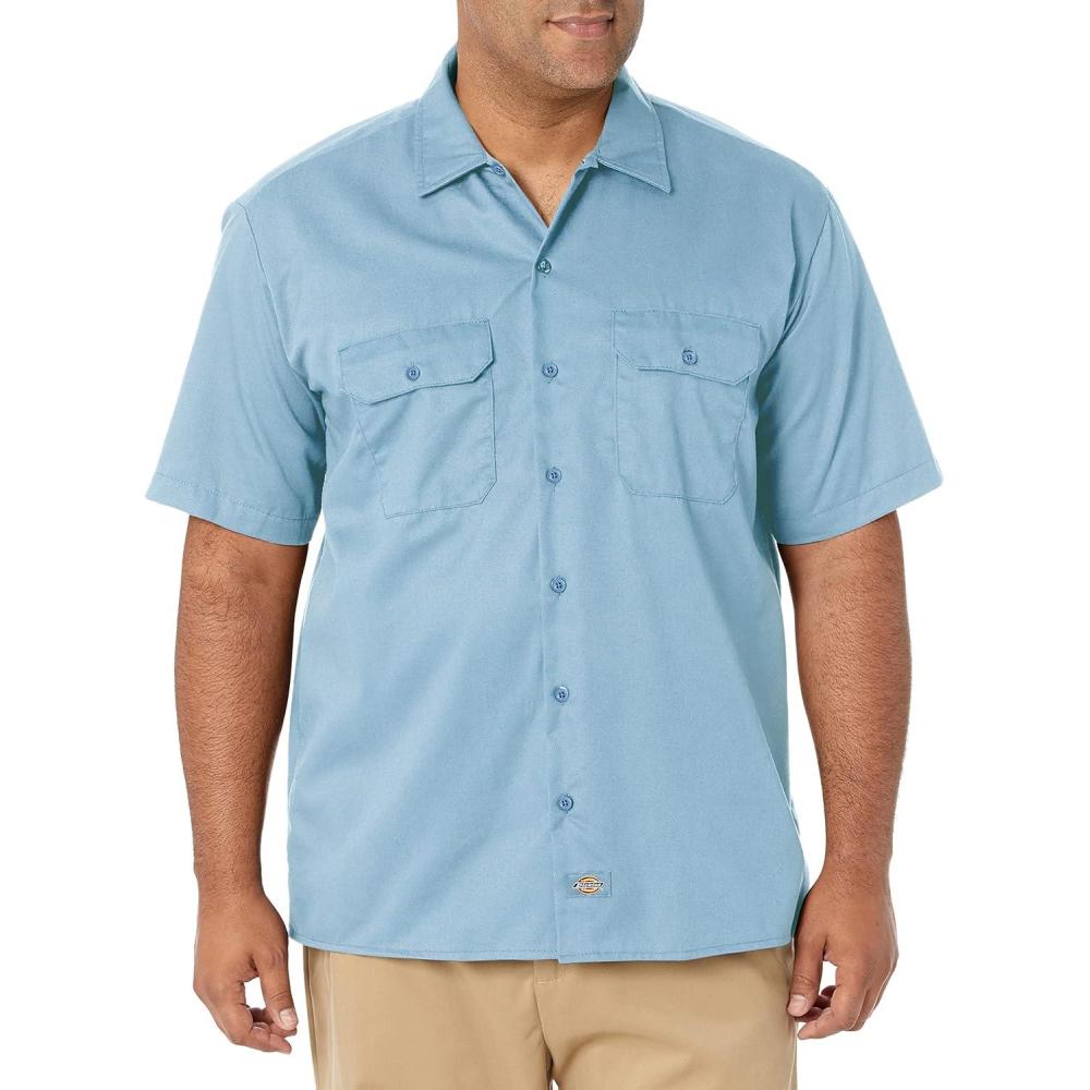 Dickies Men’s Short Sleeve Work Shirt – Durable Twill Button Down Shirts for Men, Lightweight Uniform for Daily Wear(Light Blue V1)