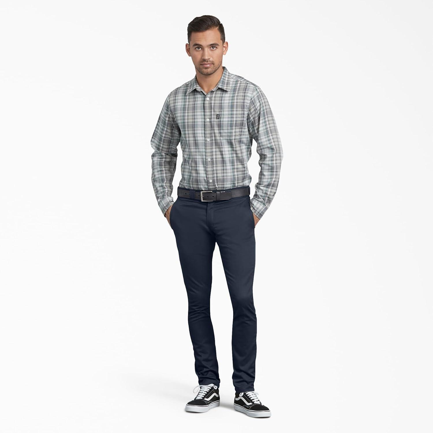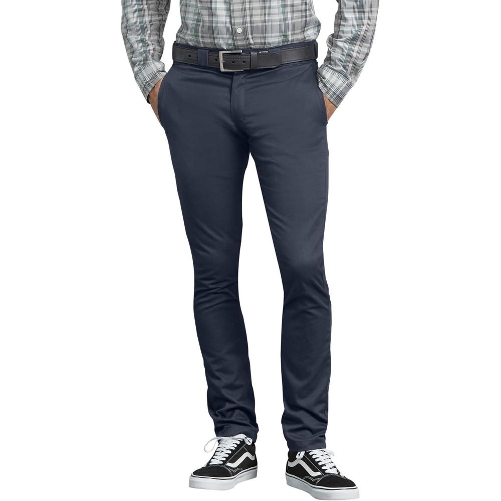 Dickies Men's Skinny Fit Straight Leg Pants – Slim Stretch Work Trousers for Office, Retail & Casual Wear(Dark Navy)