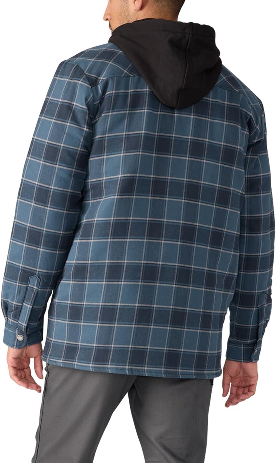 Dickies Men’s Water Repellent Flannel Hooded Shirt Jacket(Dark Navy)