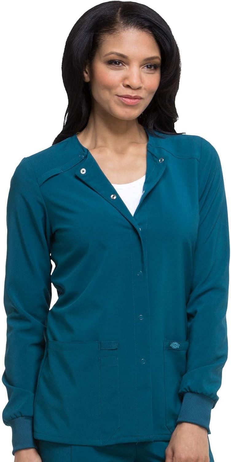 Dickies Scrub Jackets For Woman Snap Front Warm-up Jacket With 2 Pockets – DK305(Caribbean Blue)