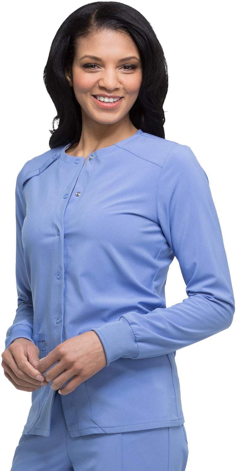 Dickies Scrub Jackets For Woman Snap Front Warm-up Jacket With 2 Pockets – DK305(Ciel)