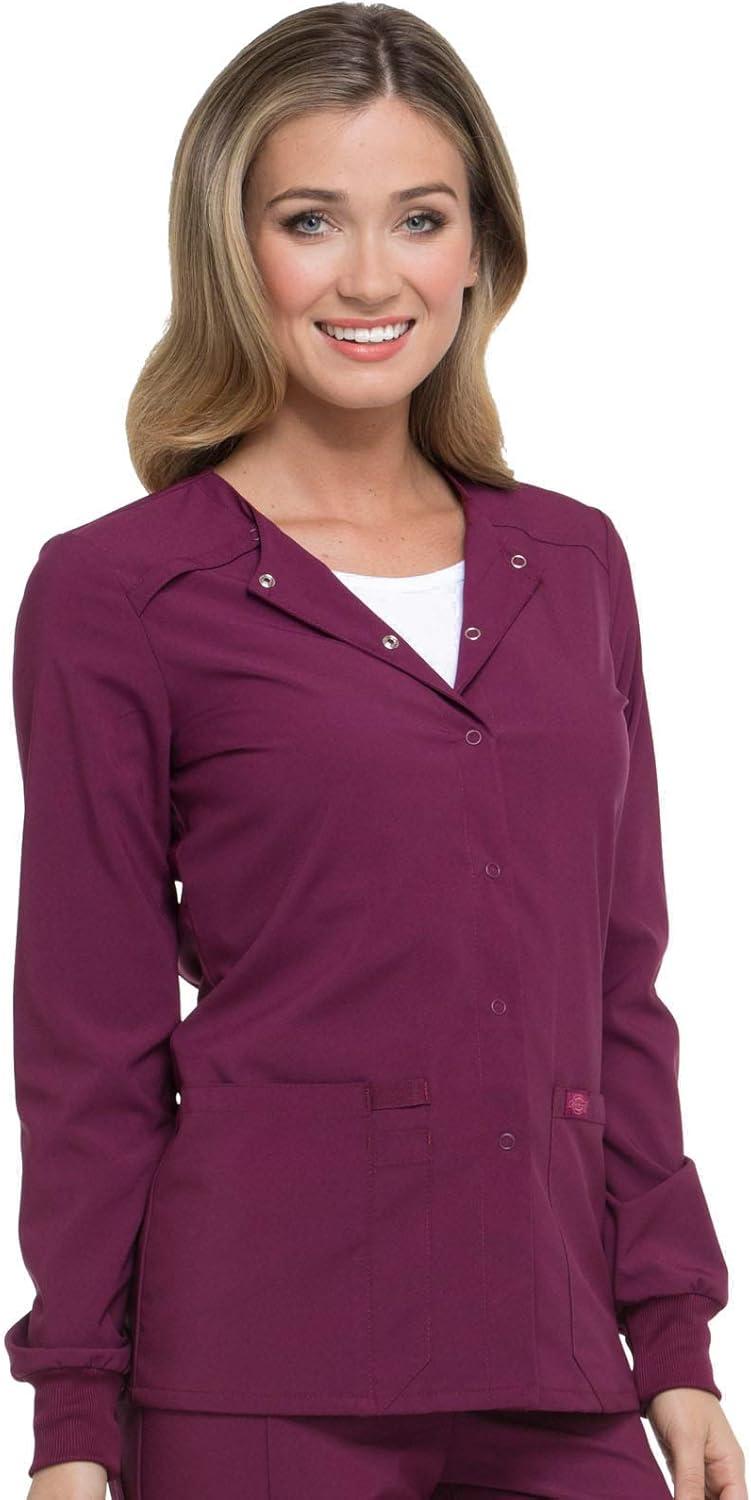 Dickies Scrub Jackets For Woman Snap Front Warm-up Jacket With 2 Pockets - DK305(Wine)