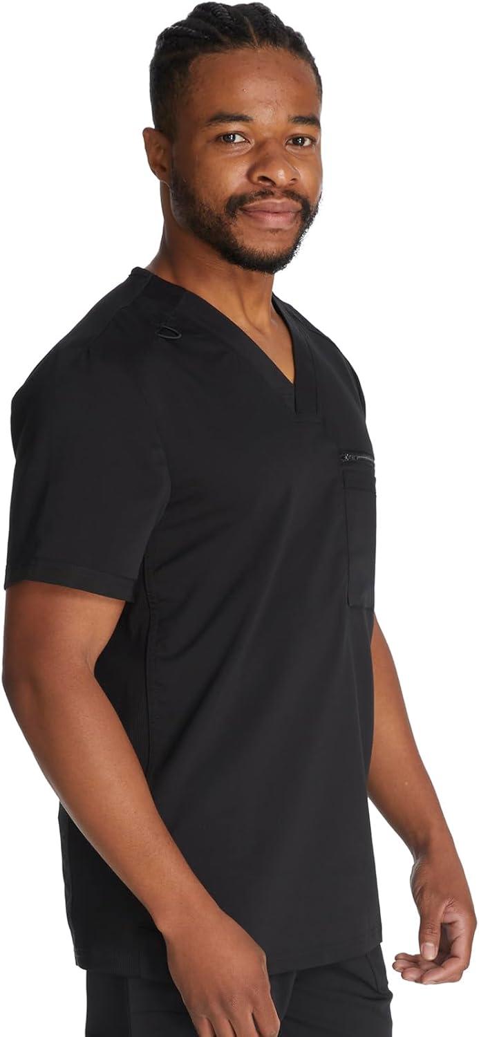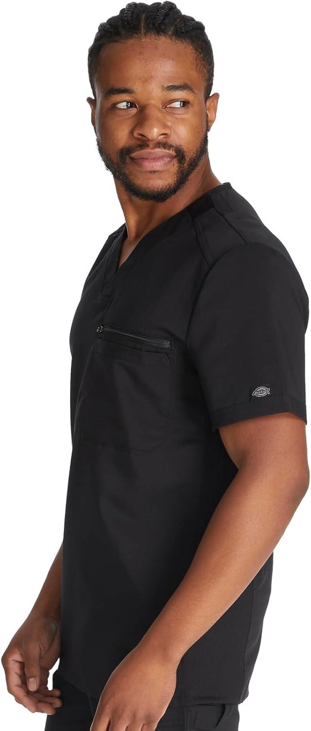 Dickies Scrub Top for Men with Zip Chest Pocket, Rib Knit, I.D. Badge at, 2-Way Stretch Durable & Breathable Fabric - DK865(Black)