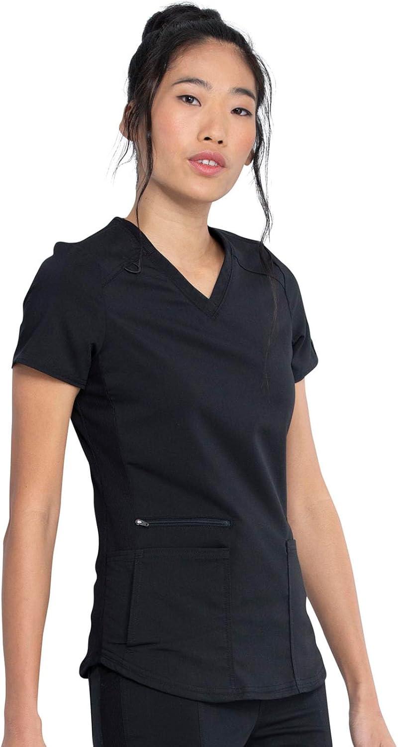 Dickies V-Neck Scrub Top with 5 Pockets Shirttail Hem and Bi-Stretch Technology DK875(Black)