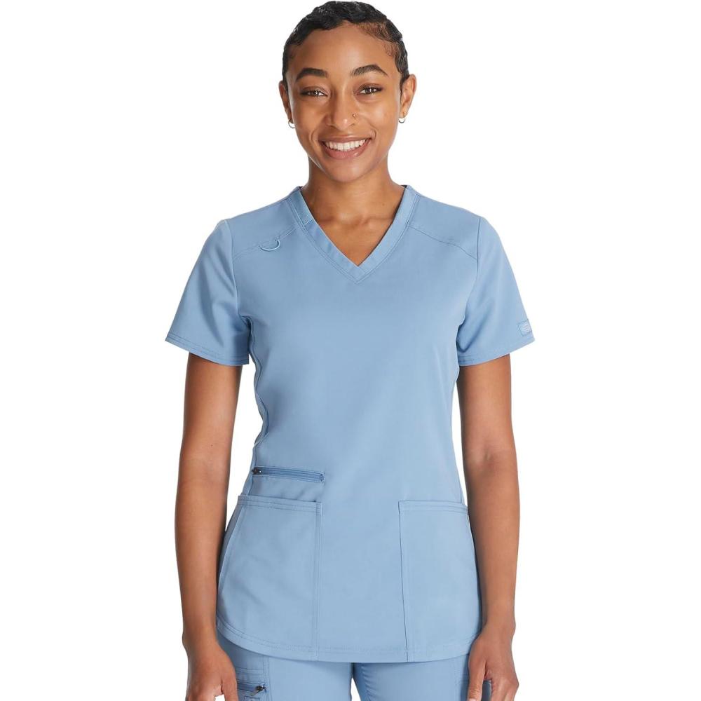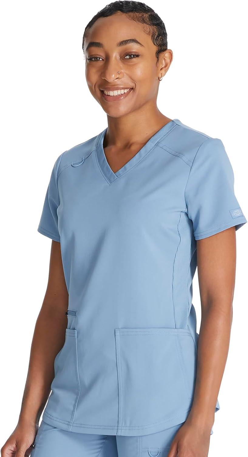 Dickies V-Neck Scrub Top with 5 Pockets Shirttail Hem and Bi-Stretch Technology DK875(Blue Jean)