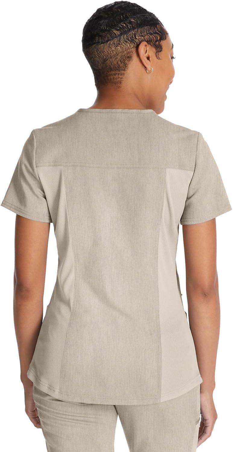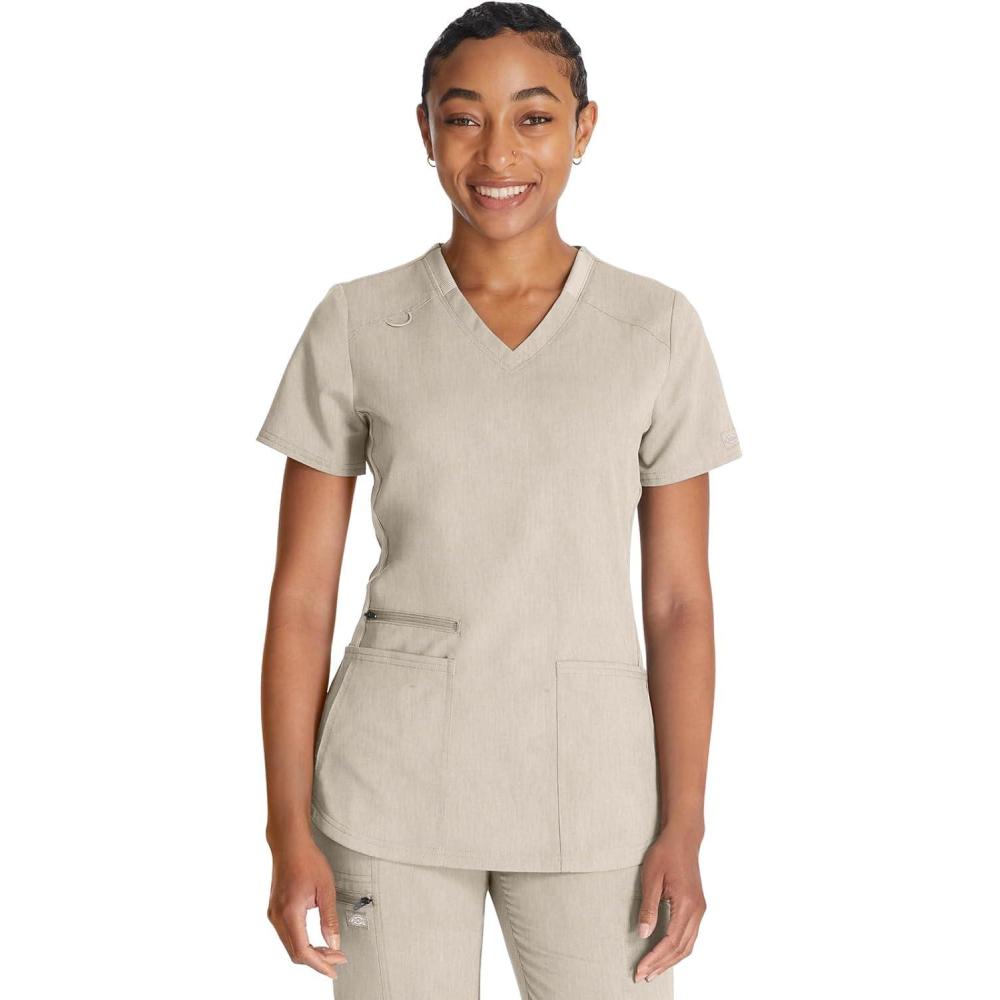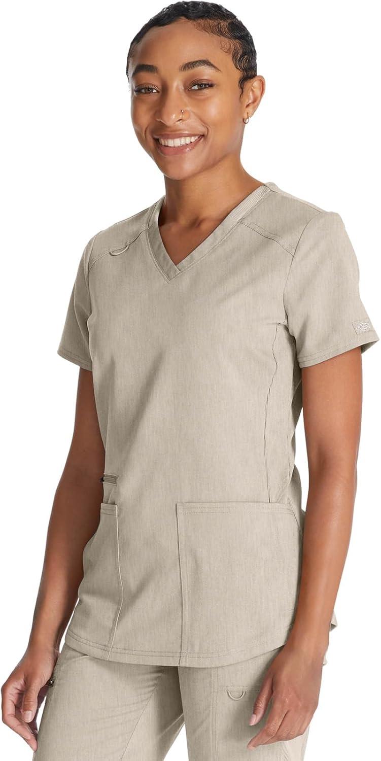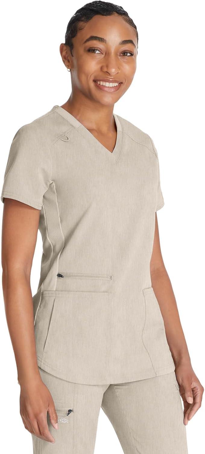 Dickies V-Neck Scrub Top with 5 Pockets Shirttail Hem and Bi-Stretch Technology DK875(Heather Blonde Wood)