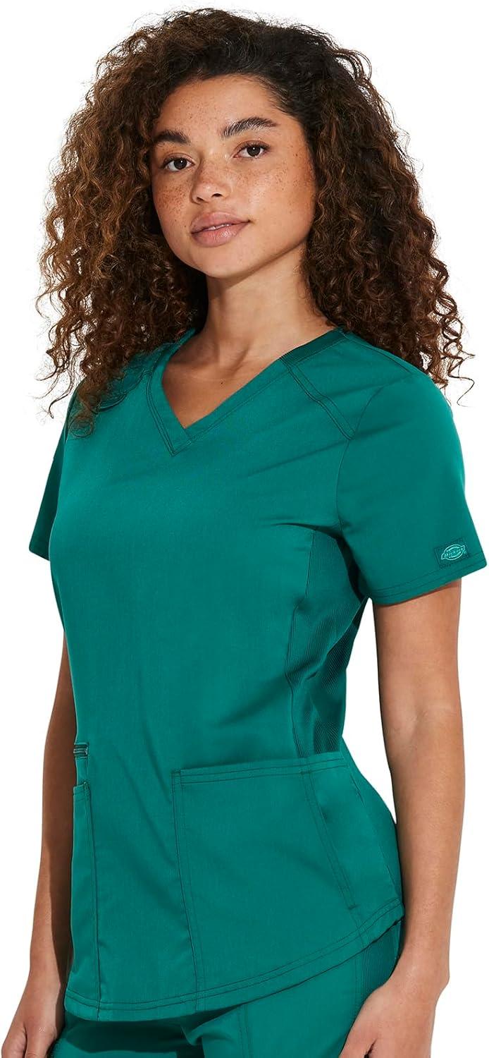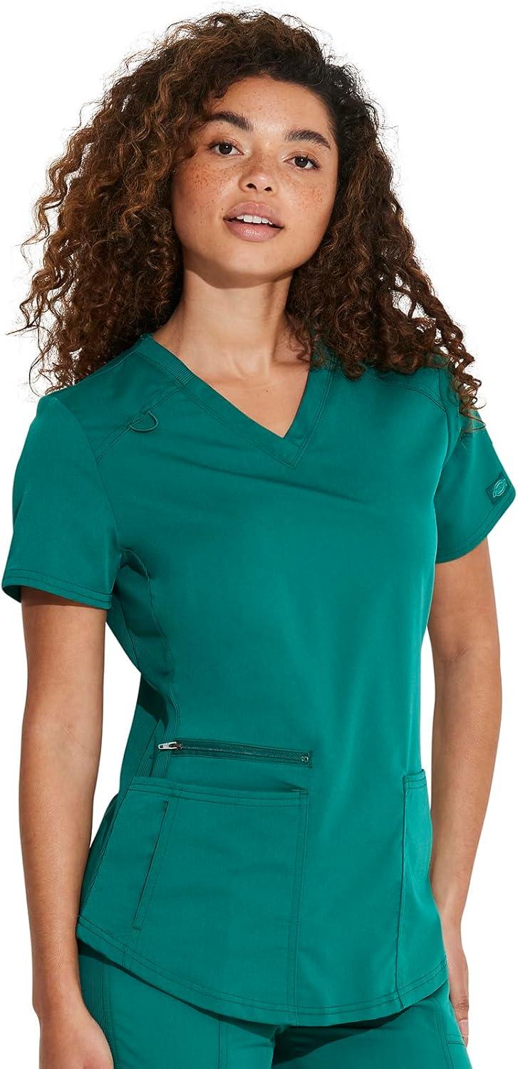 Dickies V-Neck Scrub Top with 5 Pockets Shirttail Hem and Bi-Stretch Technology DK875(Hunter Green)