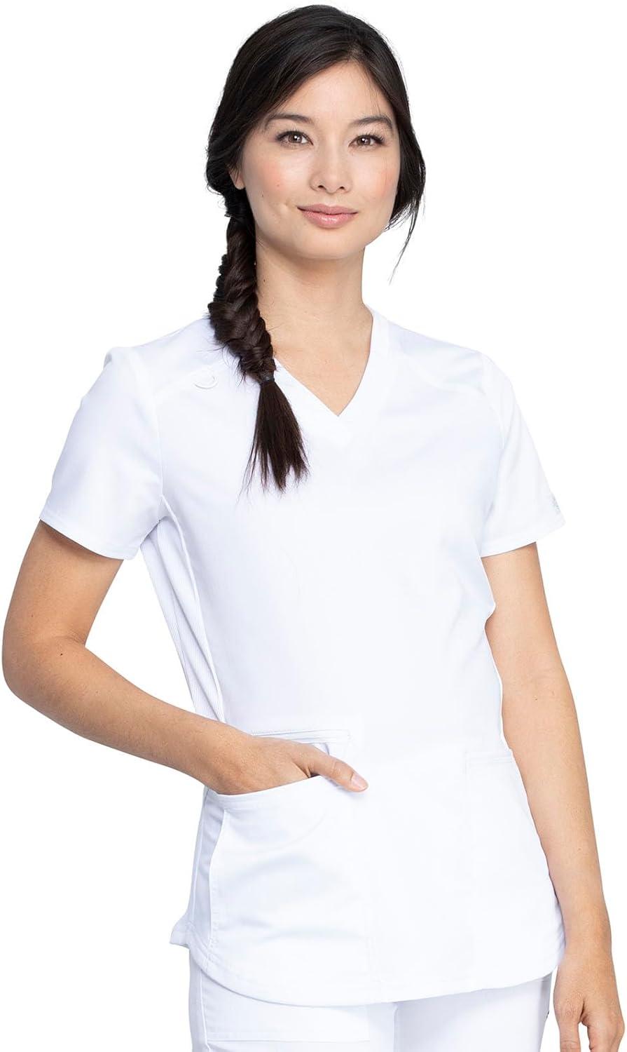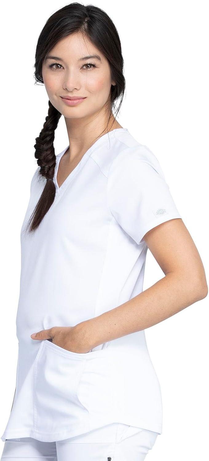 Dickies V-Neck Scrub Top with 5 Pockets Shirttail Hem and Bi-Stretch Technology DK875(White)