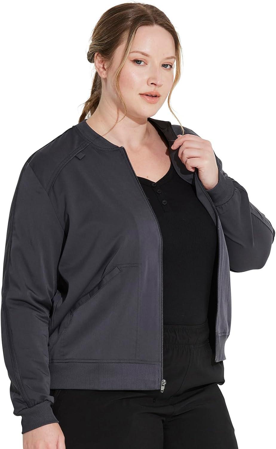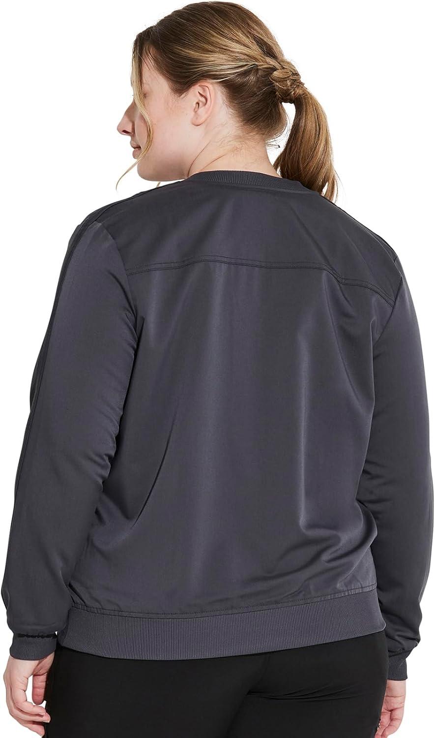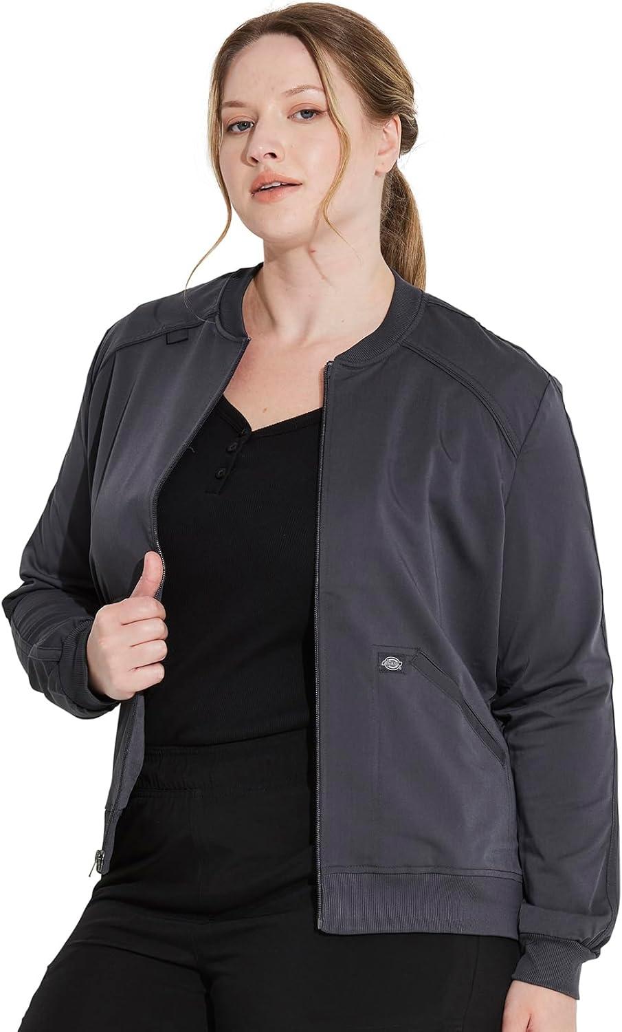 Dickies Women Scrub Jacket Zip Front Warm-Up Rib Knit Collar with 2 Welt Pocket DK365(Pewter)