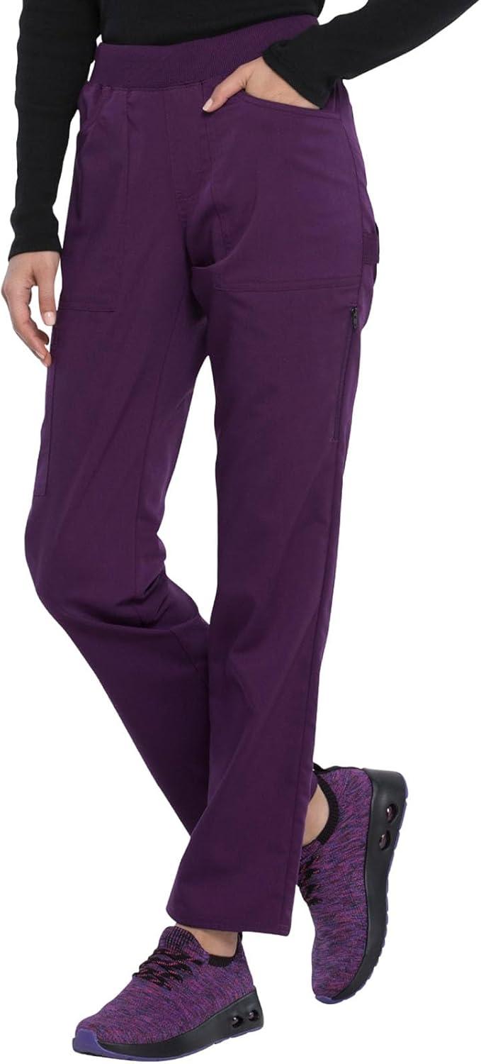 Dickies Women Scrub Pull-on Pant Mid Rise Tapered Leg Bottoms with 6 Pockets & Rib-Knit Waistband DK135(Eggplant)