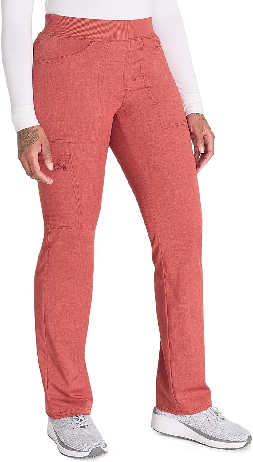 Dickies Women Scrub Pull-on Pant Mid Rise Tapered Leg Bottoms with 6 Pockets & Rib-Knit Waistband DK135(Heather Clay)