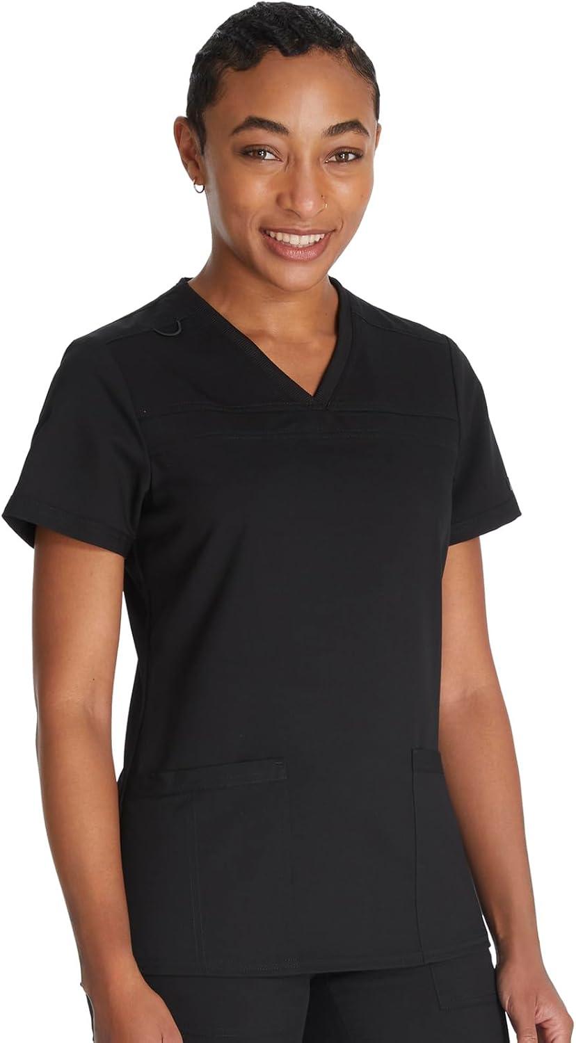 Dickies Women Scrub Top V-Neck with with Rib Knit Panels 2 Pockets and Bungee Loop DK870(Black)