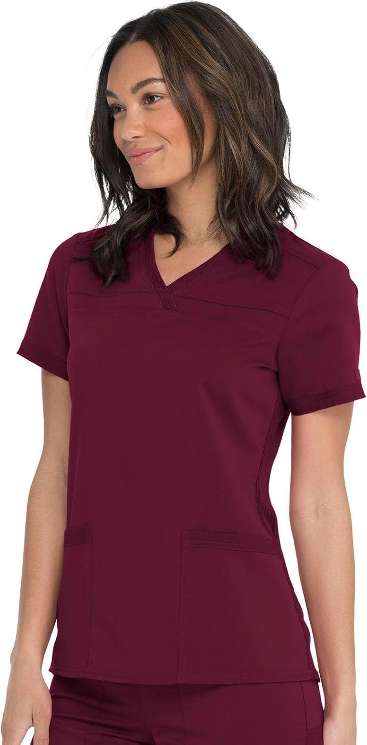 Dickies Women Scrub Top V-Neck with with Rib Knit Panels 2 Pockets and Bungee Loop DK870(Wine)