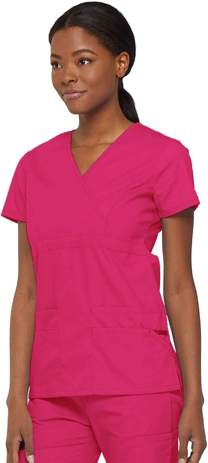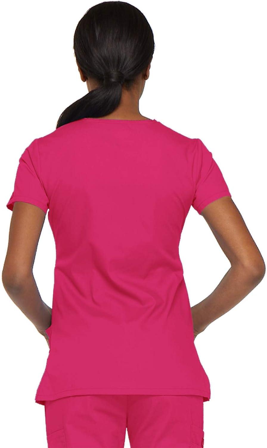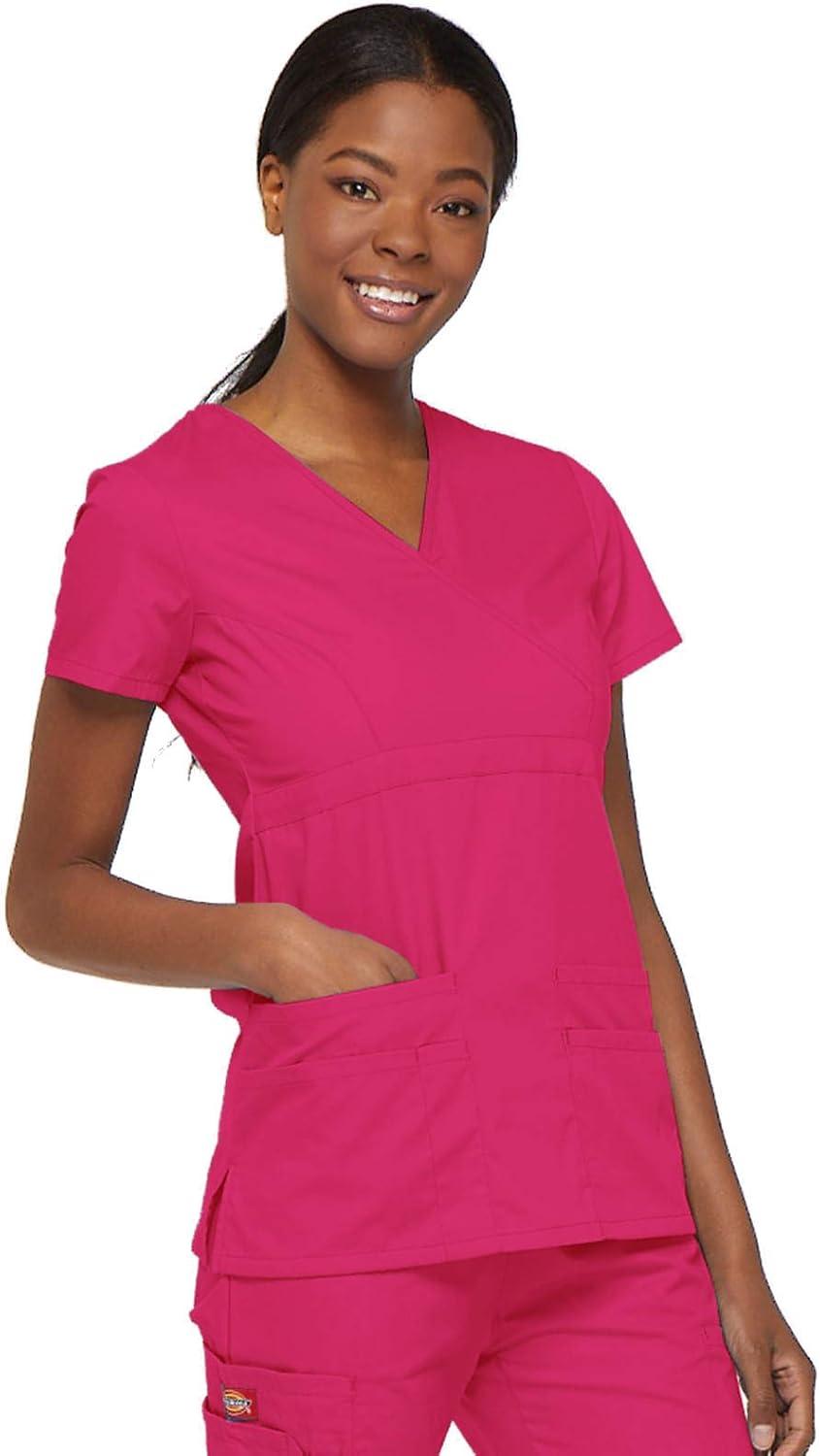 Dickies Women’s EDS Signature Scrubs Jr. Fit Mock Wrap Top(Hot Pink)