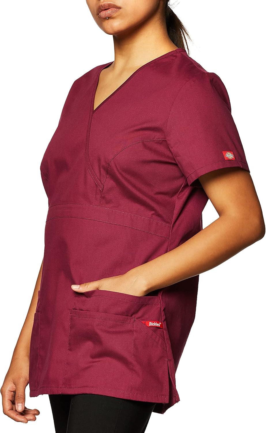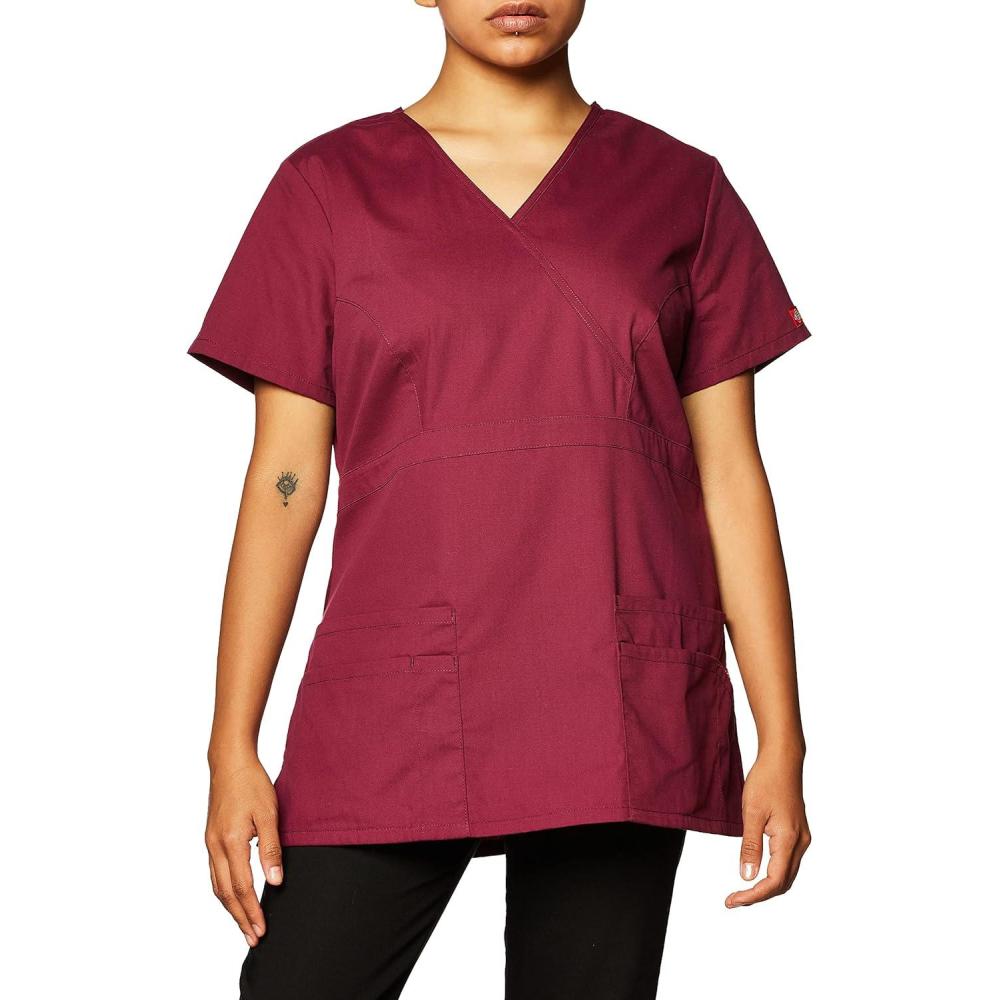 Dickies Women’s EDS Signature Scrubs Jr. Fit Mock Wrap Top(Wine)