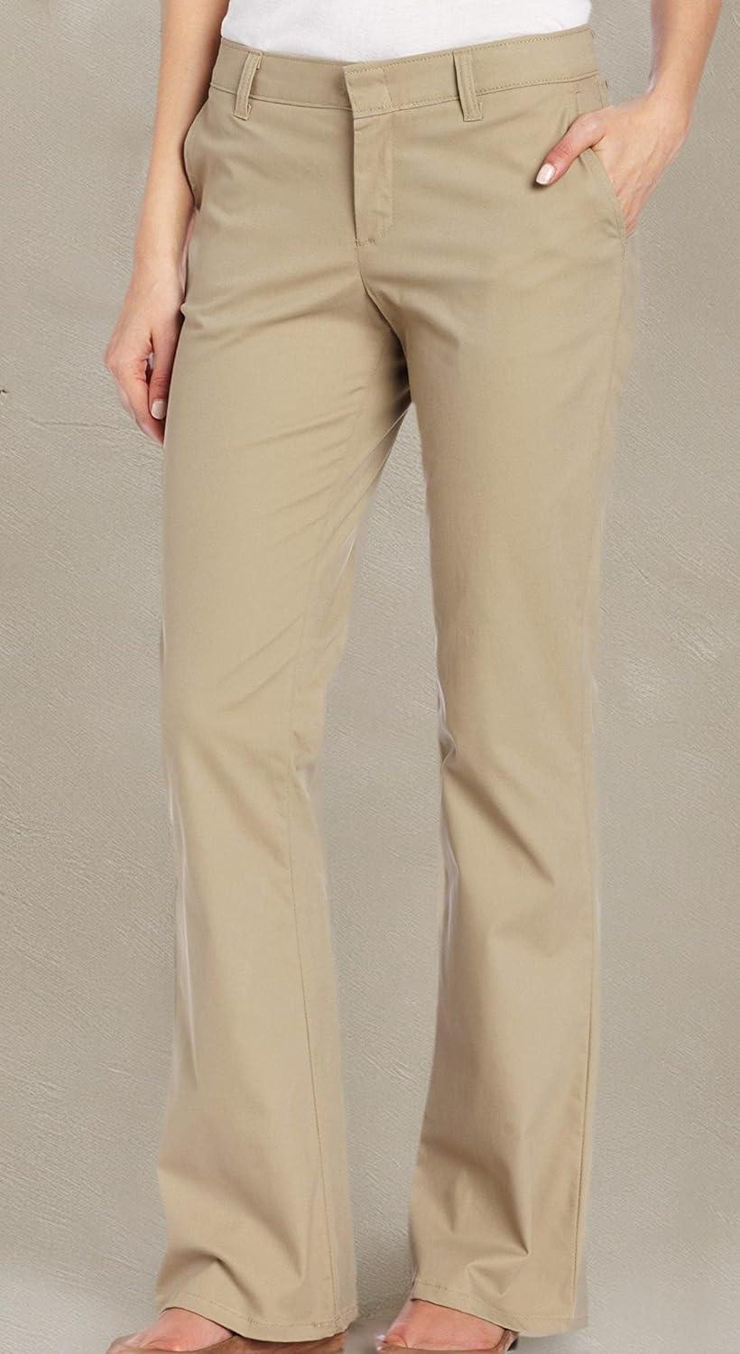 Dickies womens Flat Front Stretch Twill Pant Slim Fit Bootcut(Desert Sand)