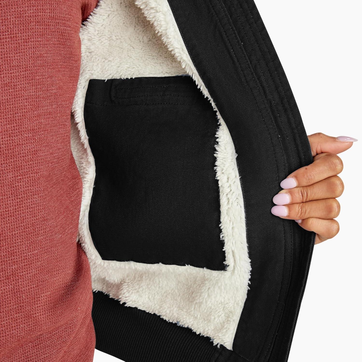 Don’t let the cold keep you from getting the job done. This women’s winter jacket features our hard-wearing duck canvas exterior for maximum durability and wind resistance. The jacket is lined with high pile fleece and features lined lower pockets for warmth you can count on all season long. Its relaxed fit makes it perfect for layering over sweatshirts and thermal styles.