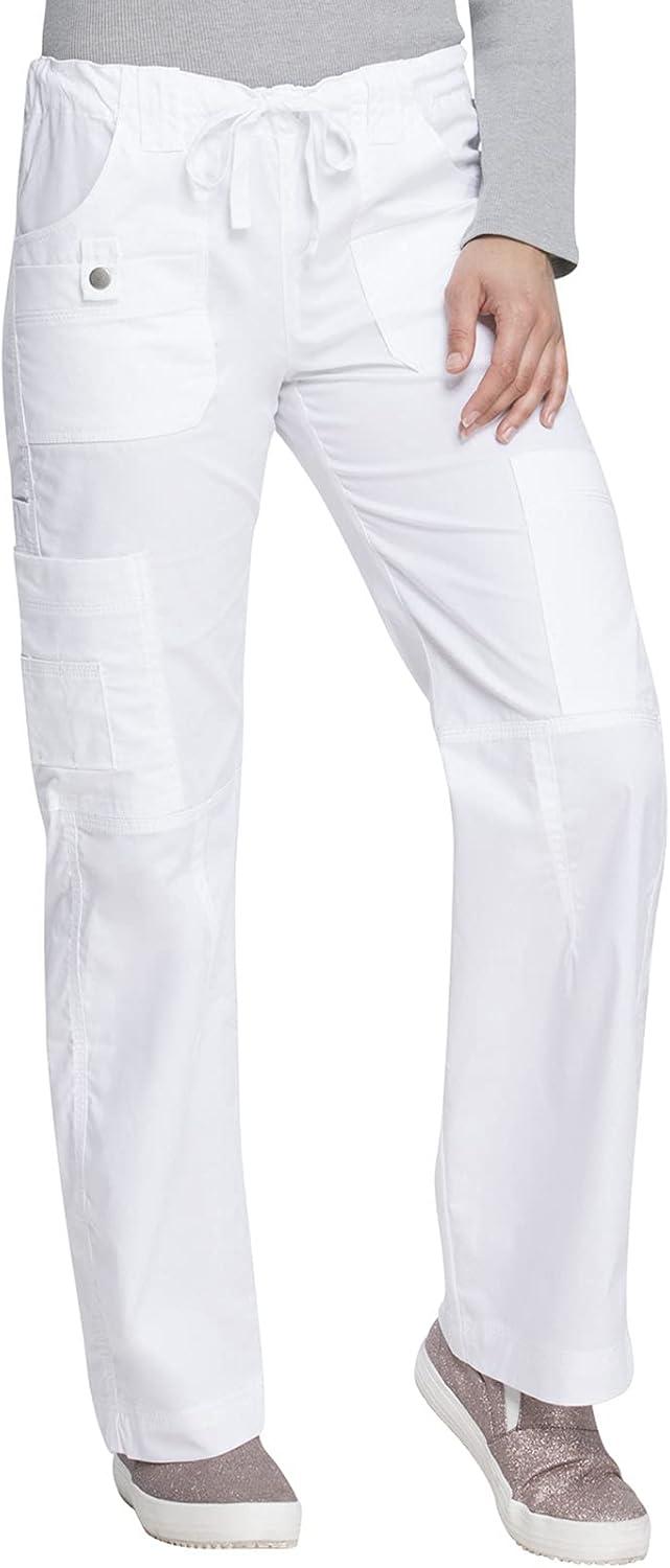 A junior fit, low-rise, straight leg pant features nine utility pockets, an elastic waist with an inside drawstring and wide belt loops. Front patch pockets have extra exterior pockets, two cargo pockets and two back pockets. Left front patch pocket has an elastic bungee loop, right exterior pocket has a functional tab with snap, right cargo pocket has an exterior triple pen holder. Pant also has multi-needle contrast topstitching and front motion knee darts. Inseam 28-inch.