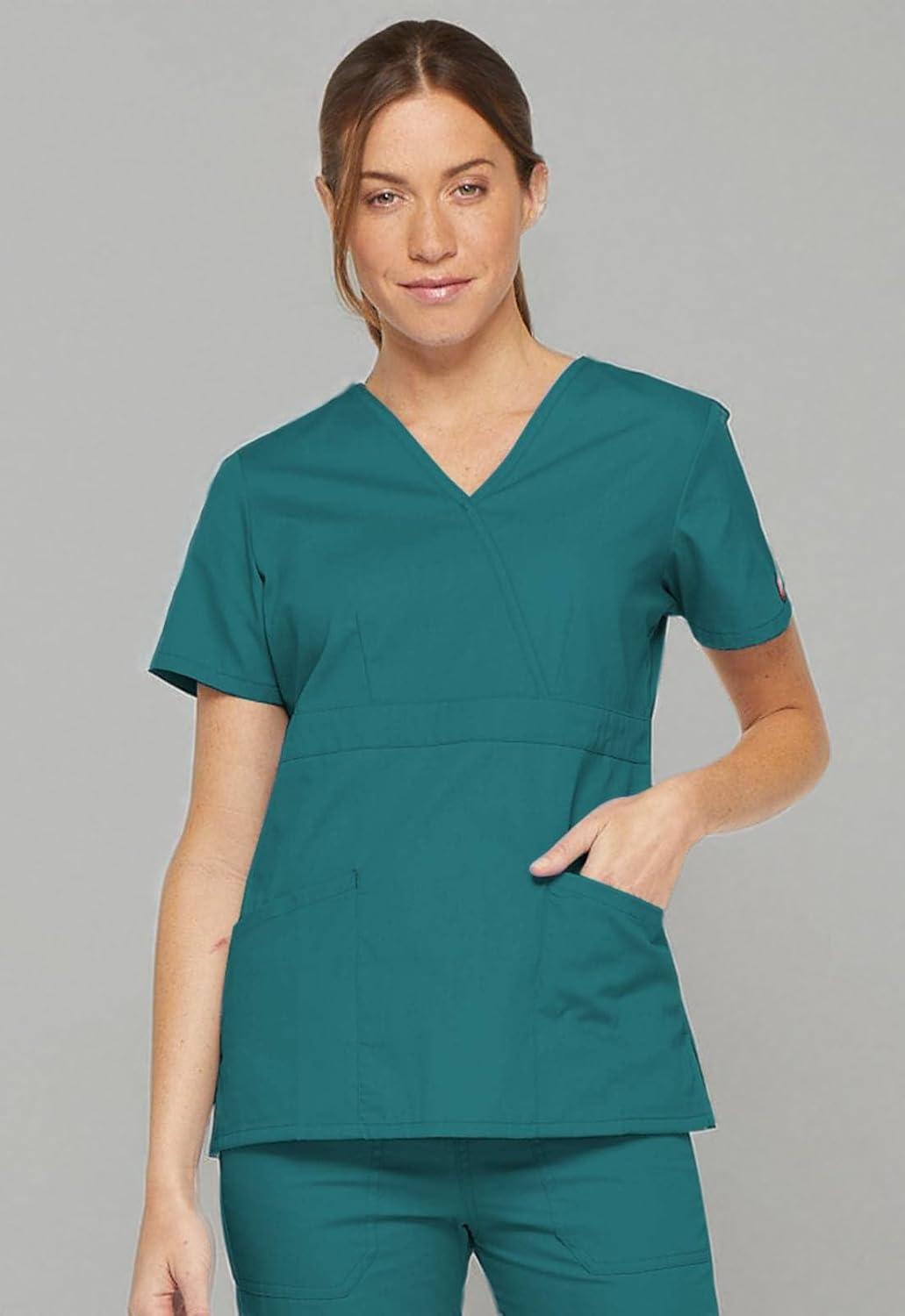Dickies Women’s Genflex Youtility Mock Wrap Top(Teal Blue)