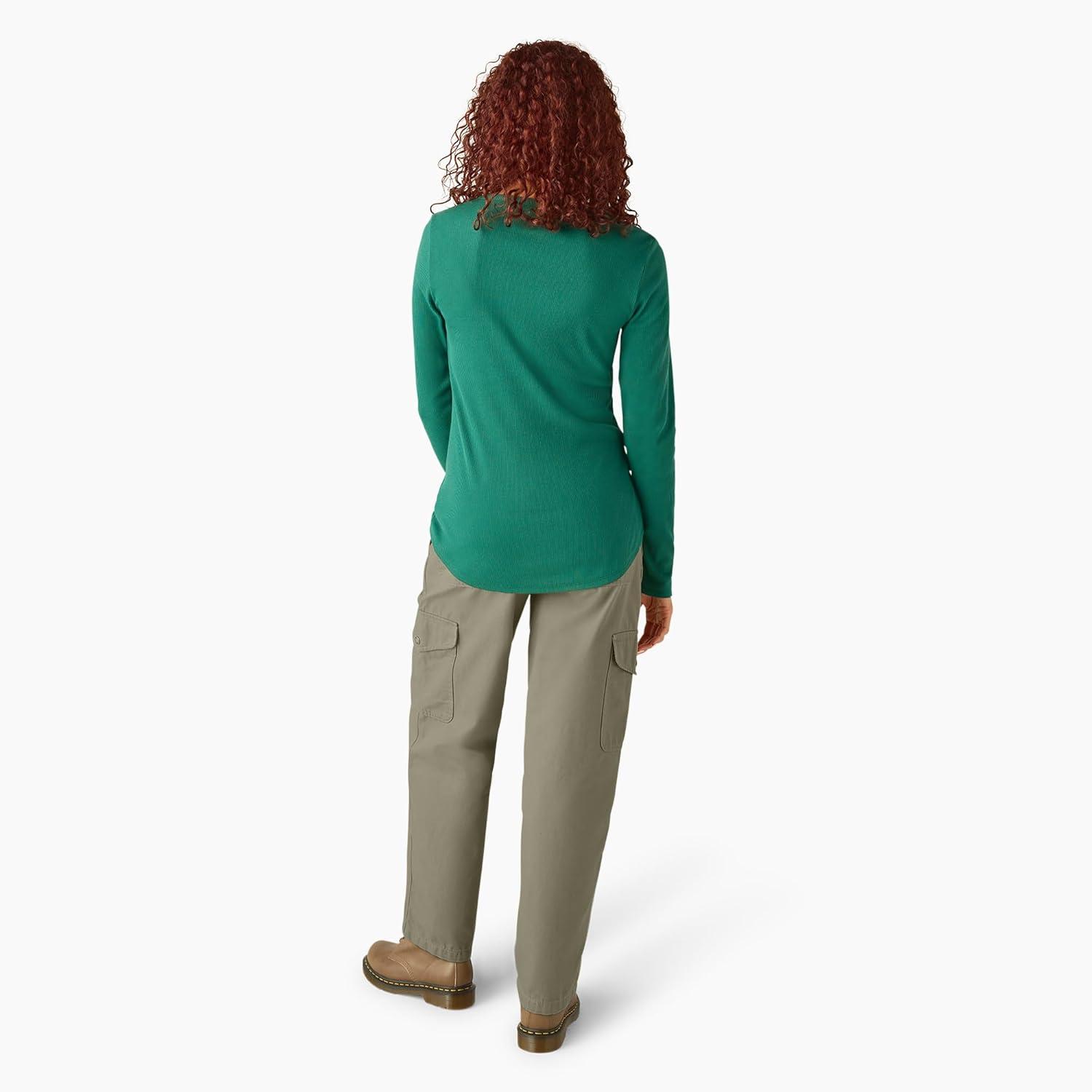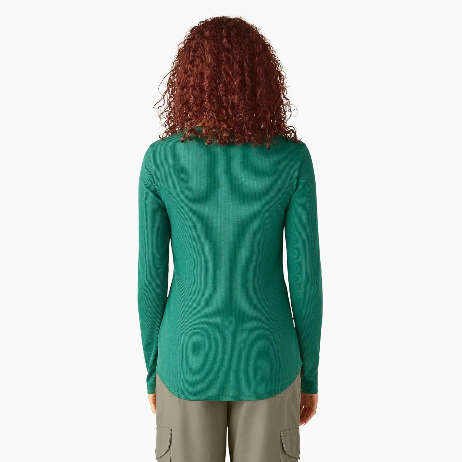 Dickies Womens Long-Sleeve 3-Button Henley Shirt(Rain Forest)
