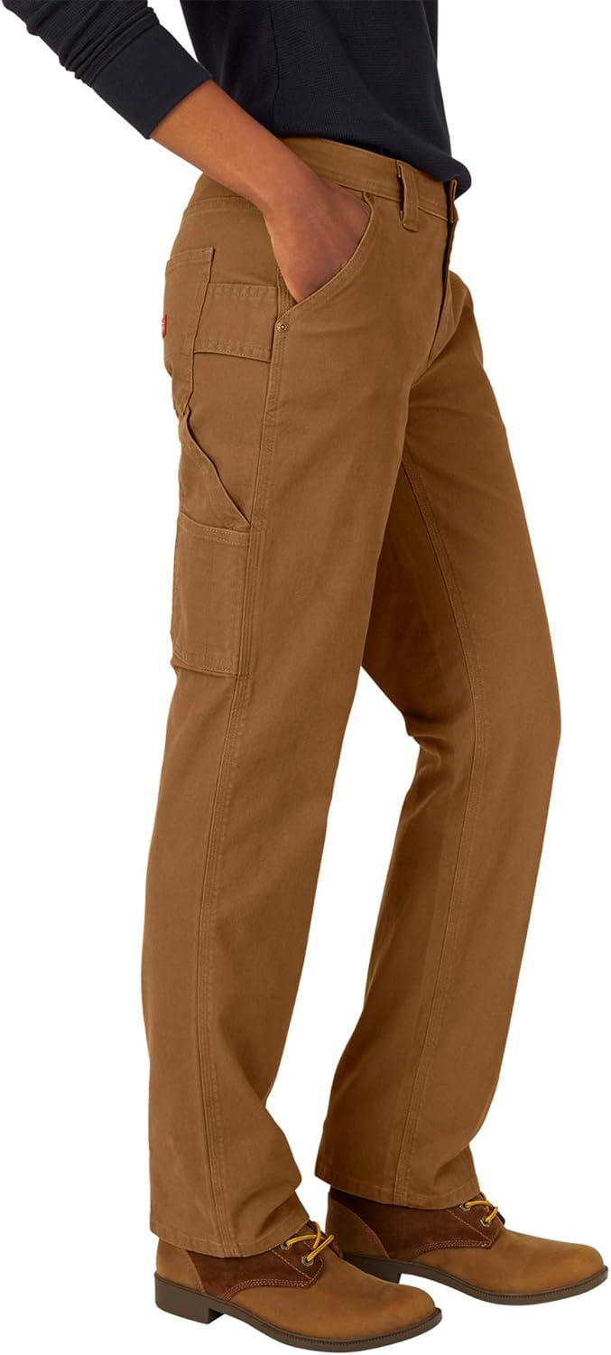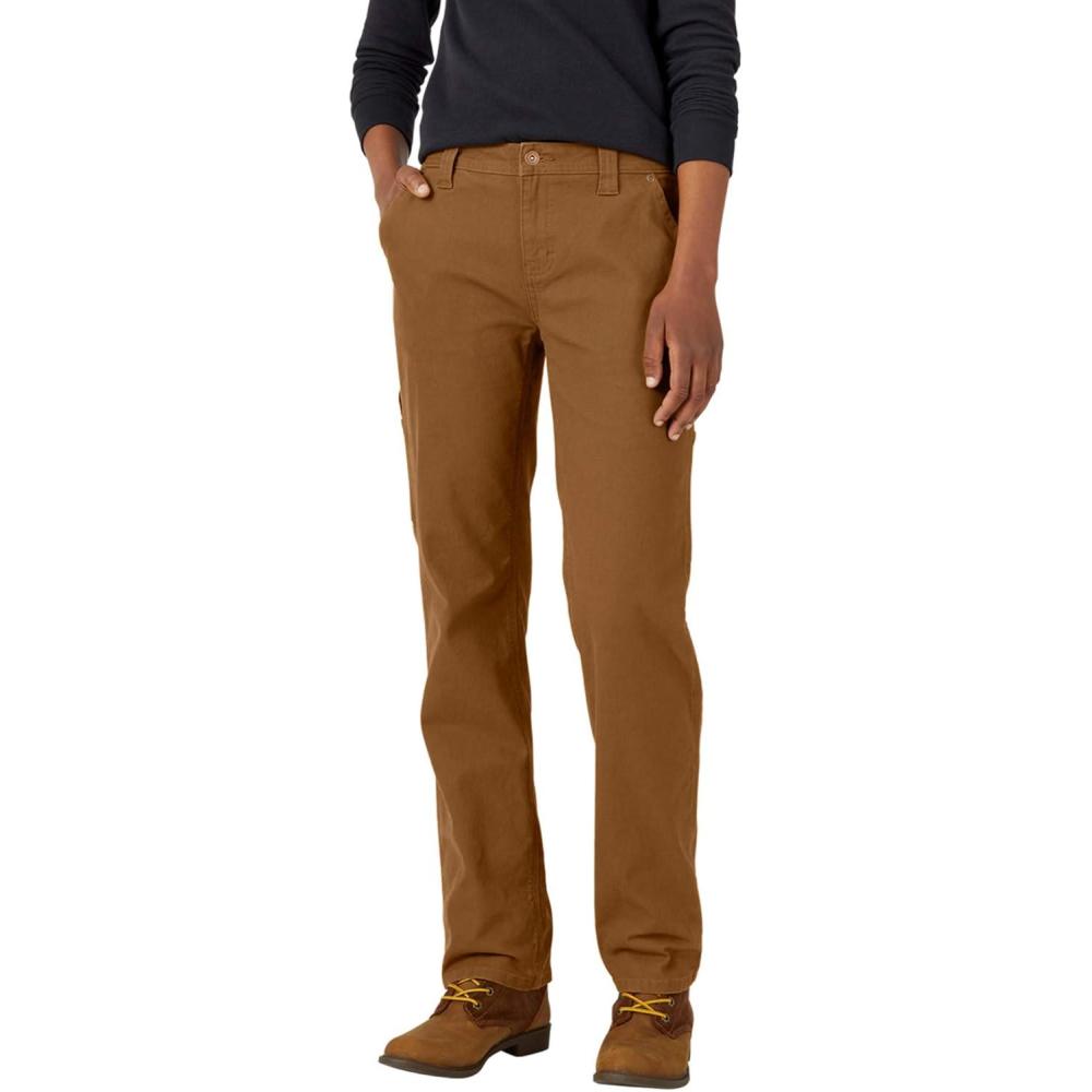 Dickies Womens Relaxed Straight Carpenter Duck Pant(Rinsed Brown Duck)