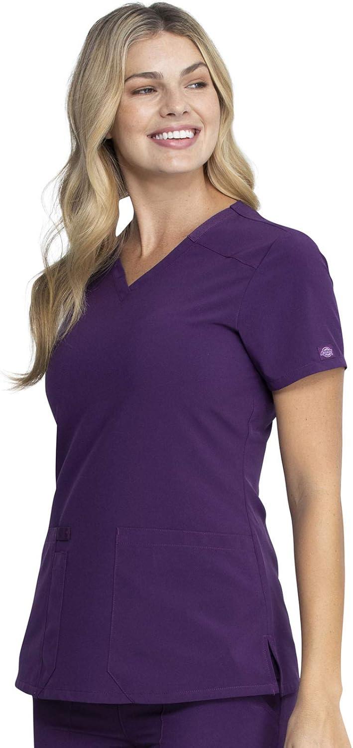 Dickies Women’s Scrub Top V-Neck Top with 2 Pockets, Moisture Wicking and 360° Stretch Fabric – DK615(Eggplant)