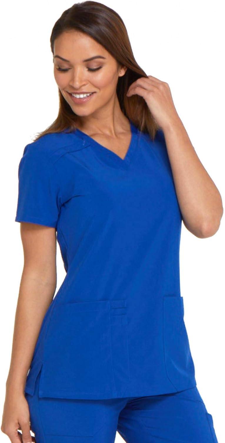 Dickies Women’s Scrub Top V-Neck Top with 2 Pockets, Moisture Wicking and 360° Stretch Fabric – DK615(Galaxy Blue)
