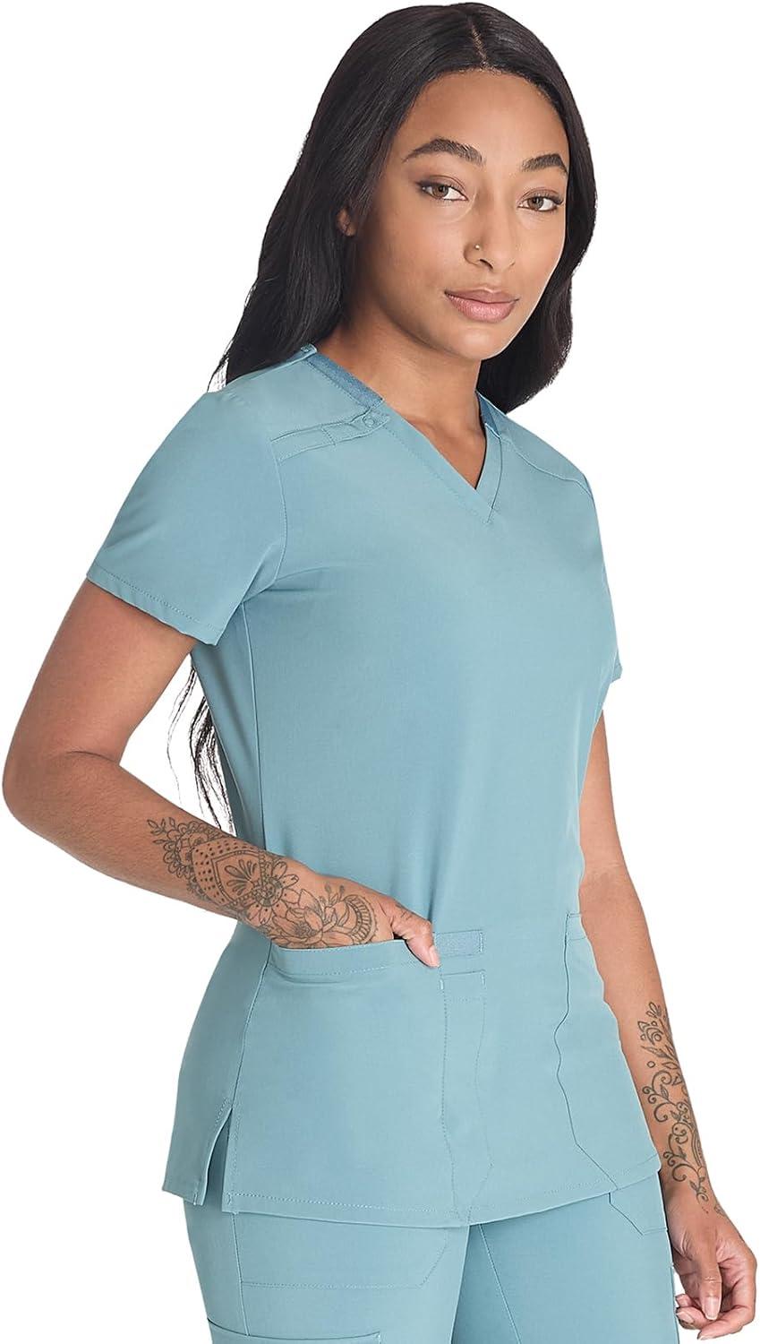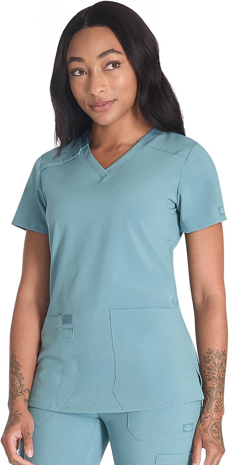 Dickies Women’s Scrub Top V-Neck Top with 2 Pockets, Moisture Wicking and 360° Stretch Fabric – DK615(Mineral Blue)