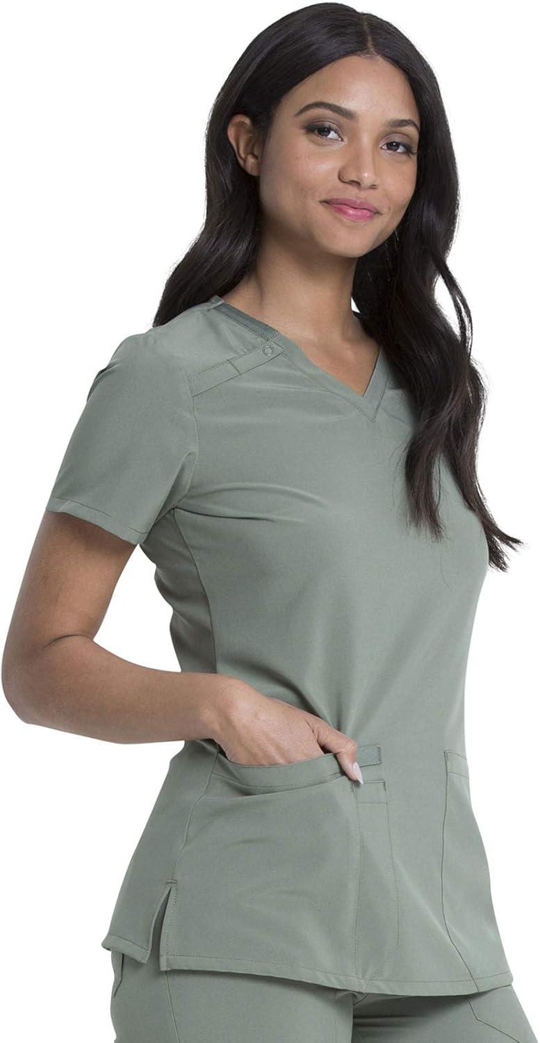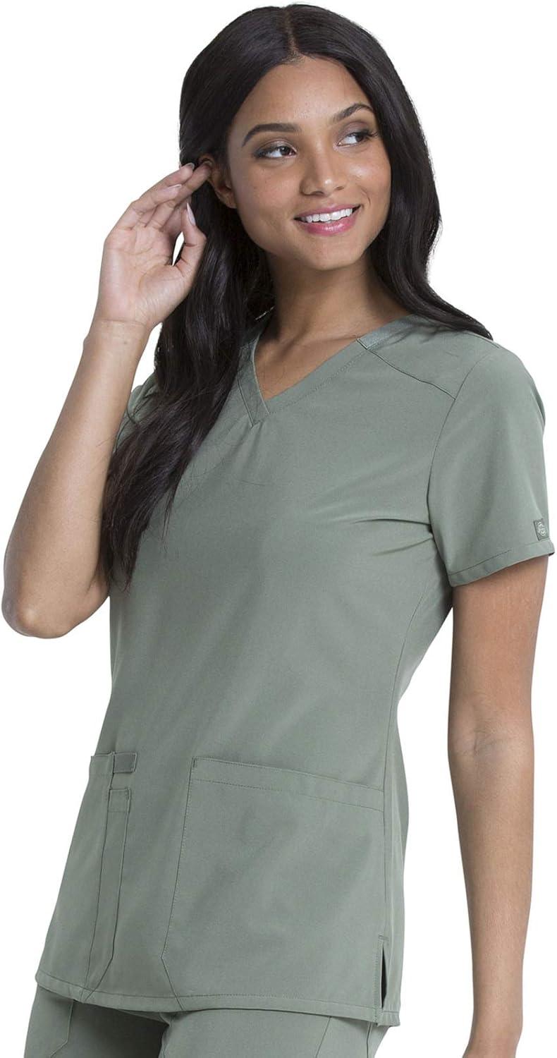 Dickies Women’s Scrub Top V-Neck Top with 2 Pockets, Moisture Wicking and 360° Stretch Fabric – DK615(Olive)