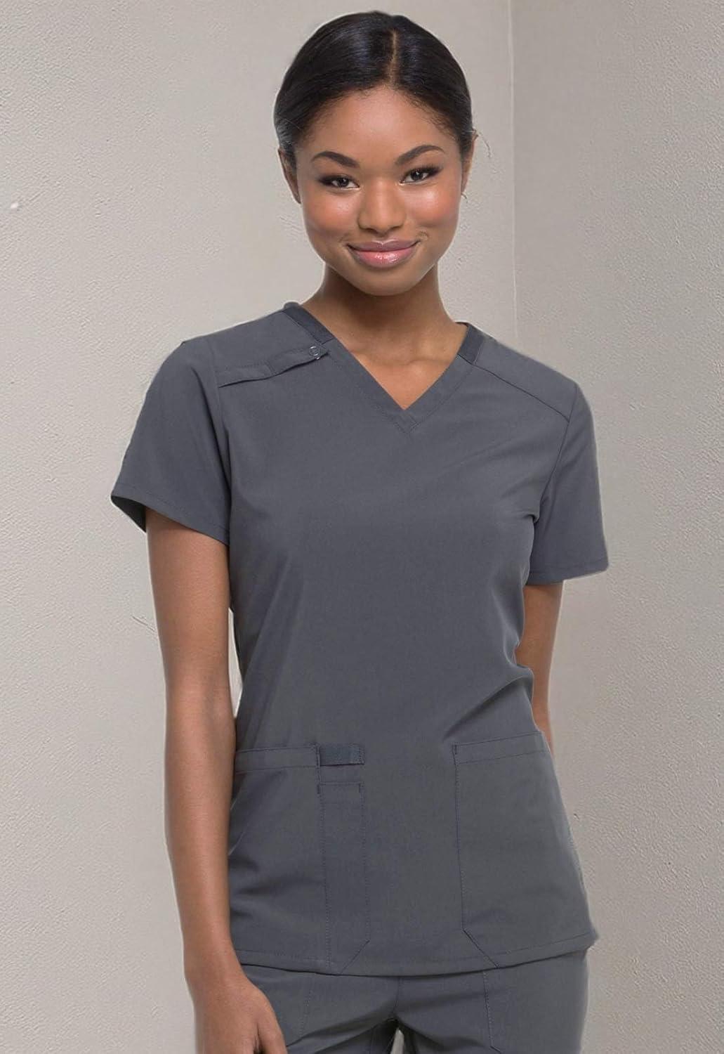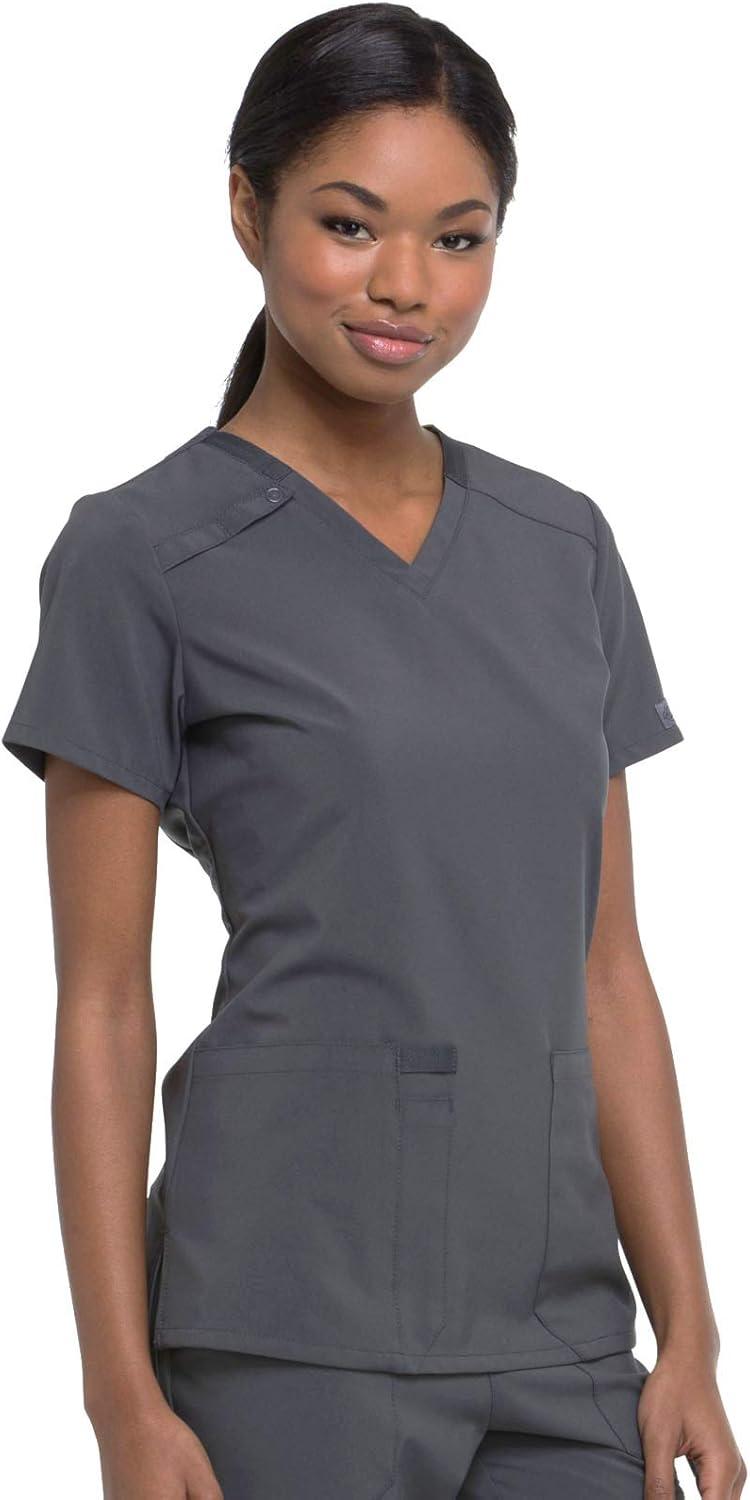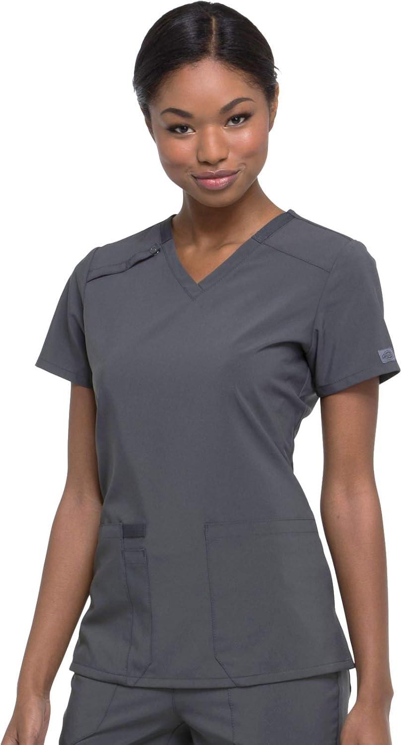 Dickies Women’s Scrub Top V-Neck Top with 2 Pockets, Moisture Wicking and 360° Stretch Fabric – DK615(Pewter)