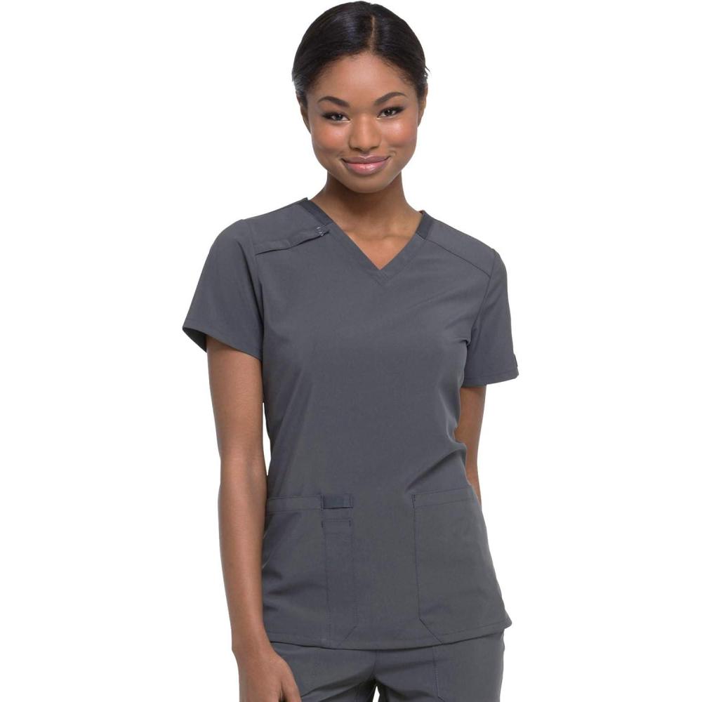 Dickies Women's Scrub Top V-Neck Top with 2 Pockets, Moisture Wicking and 360° Stretch Fabric - DK615(Pewter)