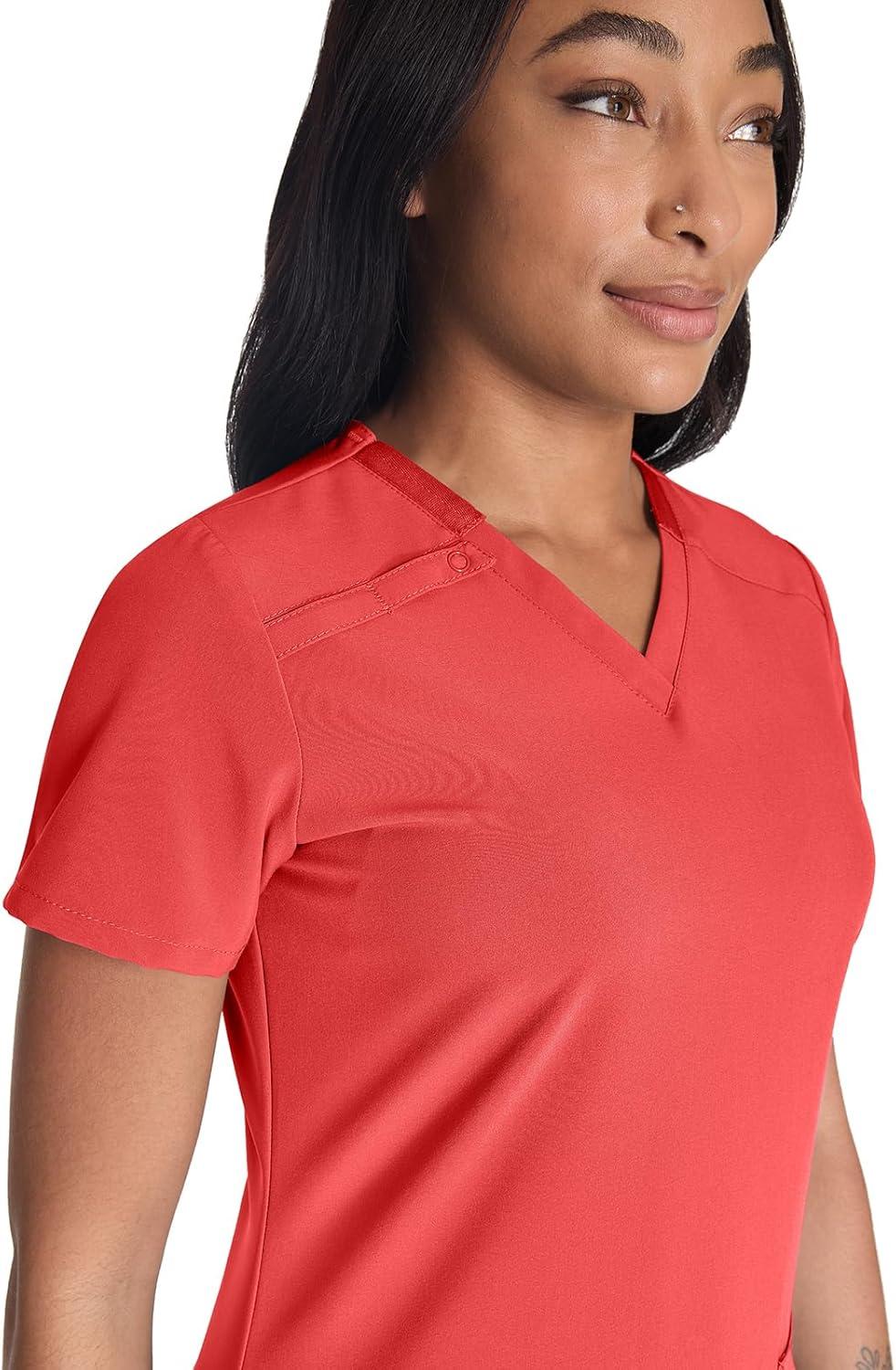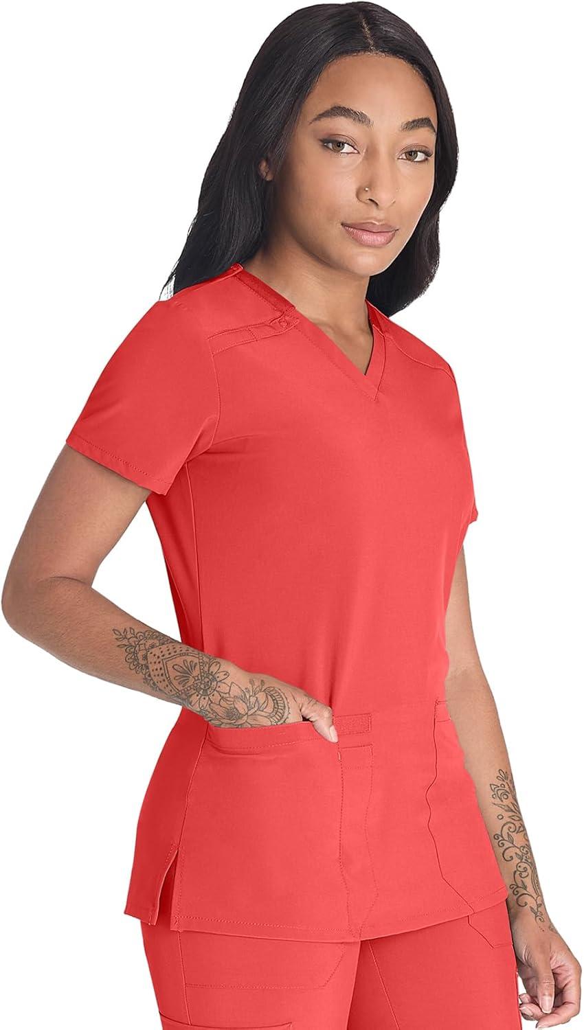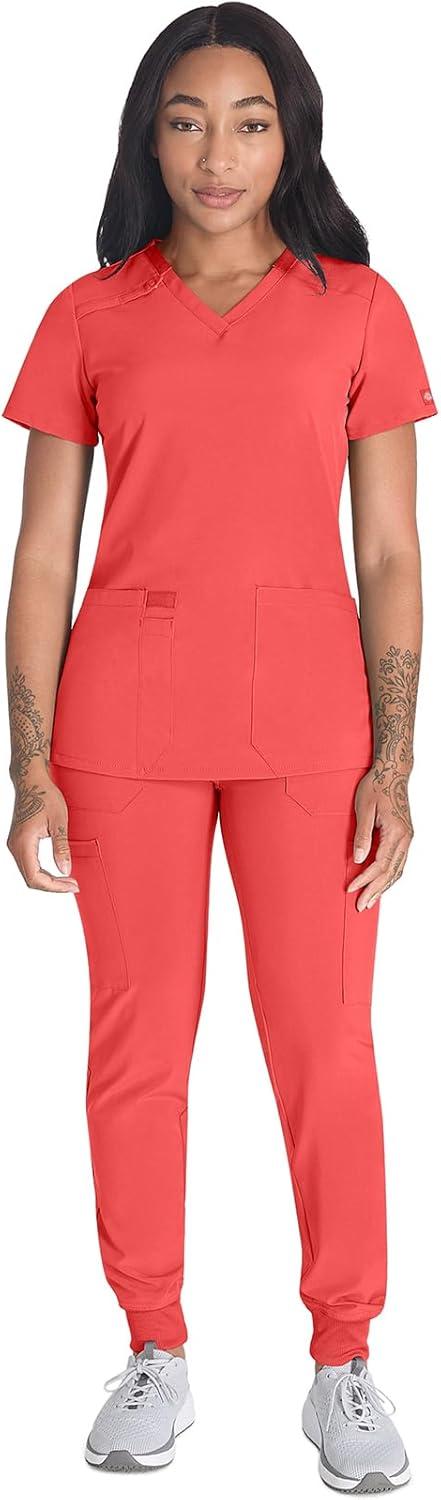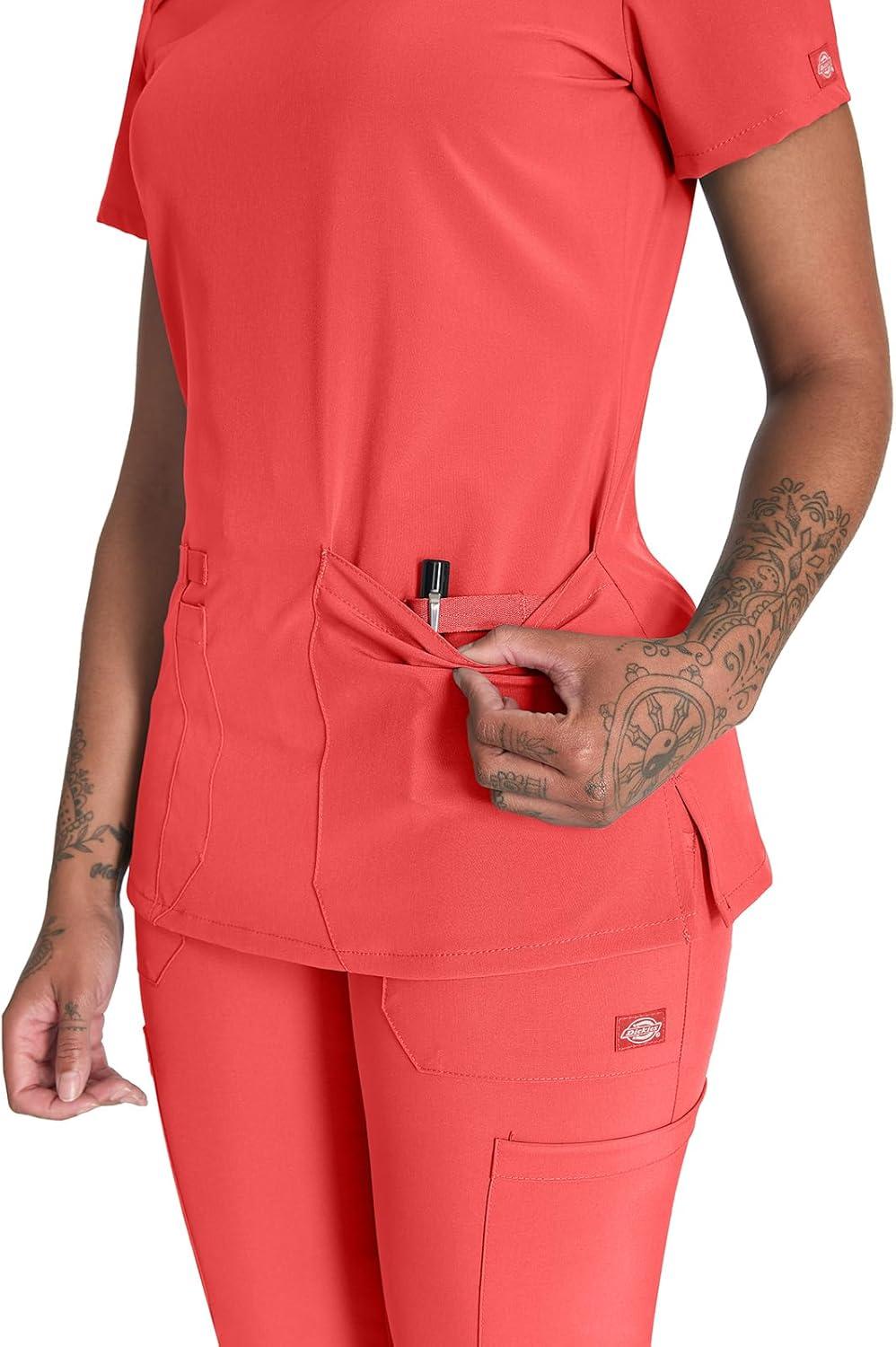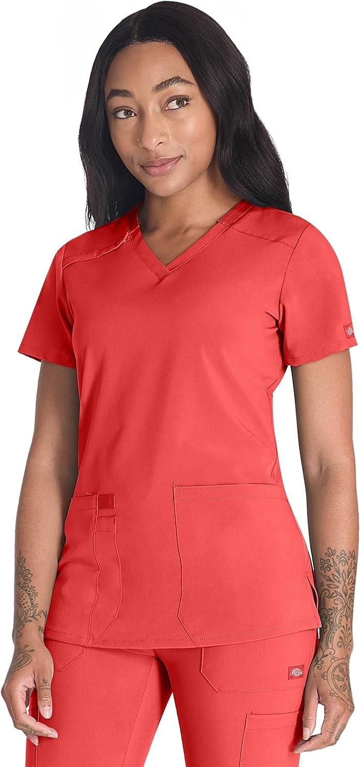 Dickies Women’s Scrub Top V-Neck Top with 2 Pockets, Moisture Wicking and 360° Stretch Fabric – DK615(Ravashing Coral)