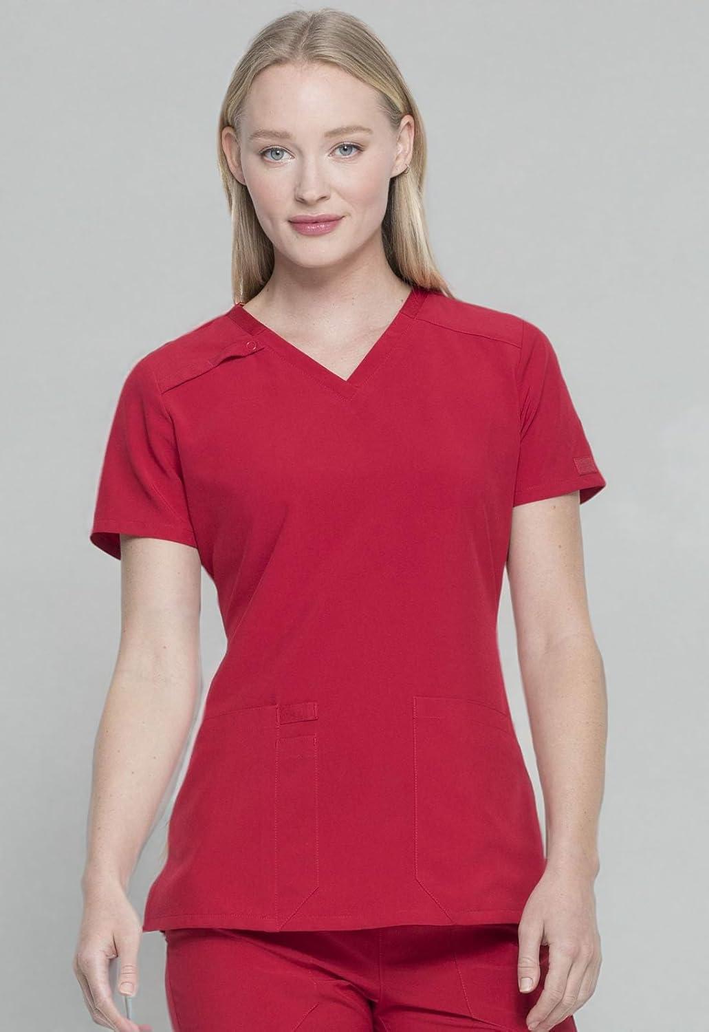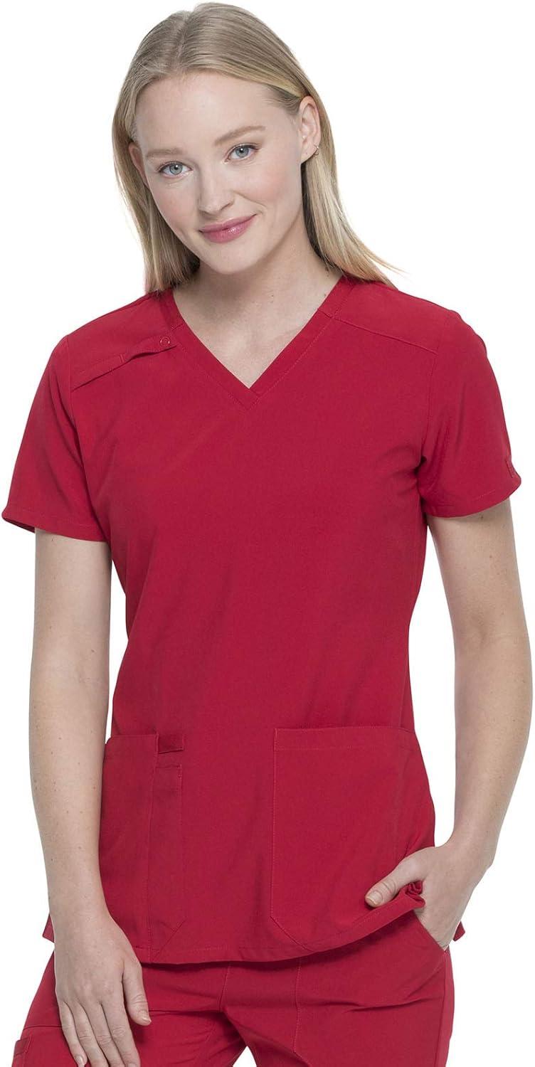 Dickies Women’s Scrub Top V-Neck Top with 2 Pockets, Moisture Wicking and 360° Stretch Fabric – DK615(Red)