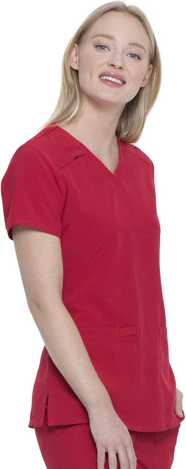 Dickies Women's Scrub Top V-Neck Top with 2 Pockets, Moisture Wicking and 360° Stretch Fabric - DK615(Red)