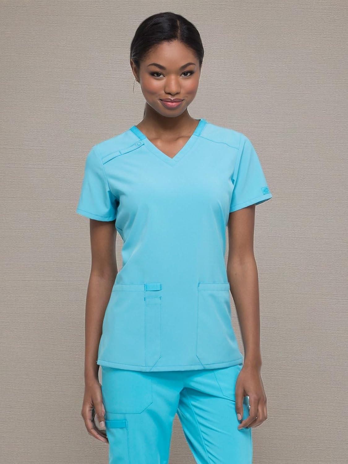 Dickies Women’s Scrub Top V-Neck Top with 2 Pockets, Moisture Wicking and 360° Stretch Fabric – DK615(Turquoise)
