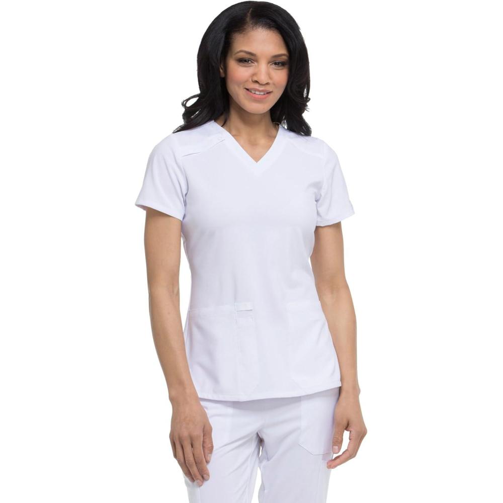Dickies Women’s Scrub Top V-Neck Top with 2 Pockets, Moisture Wicking and 360° Stretch Fabric – DK615(White)