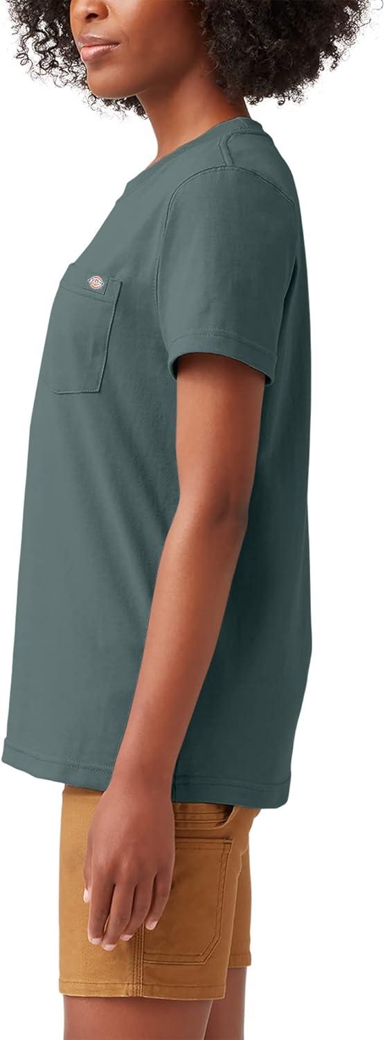 Get down to business in Dickies women's short sleeve heavyweight t-shirt. Built with a solid cotton fabrication, this jersey knit t-shirt is built to stay soft for comfort, while also designed durable enough to take daily wear and tear. The chest pocket adds a touch of utility to the shirt, letting you carry small belongings you'll need throughout your day.