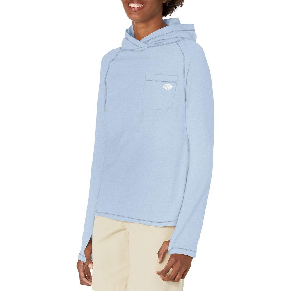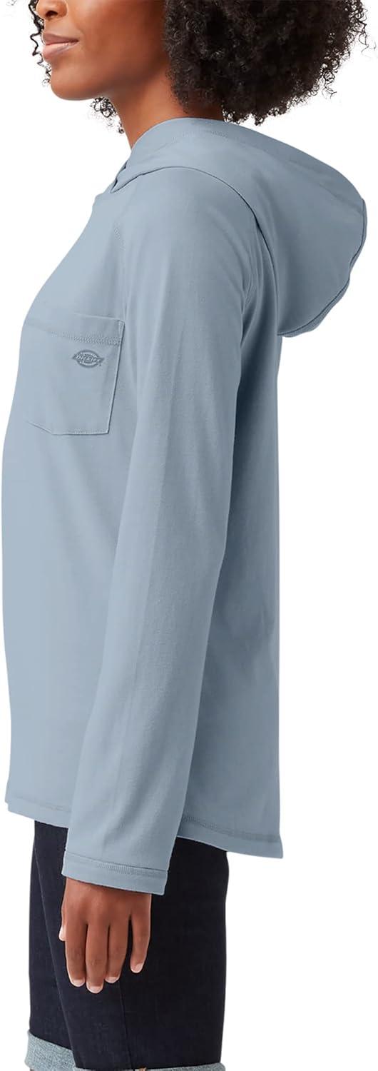 Face the sun with confidence in Dickies Women's Temp-iQ® Long Sleeve Performance Sun Shirt. Designed with serious protection in mind, this sun shirt is your ultimate line of defense between your work environment and harmful rays. The built-up neckline and contoured hood teams with the UPF 40+ sun protection to keep you performing at your best for all your outdoor jobs. Advanced Temp-iQ® intelligent cooling effectively controls your core body temperature while actively wicking away moisture to keep you cool and dry. Plus, anchor thumbholes allow for additional coverage and protection. Complete with a chest pocket and pencil division, you can trust Dickies with all your protective needs that never fall short on function.