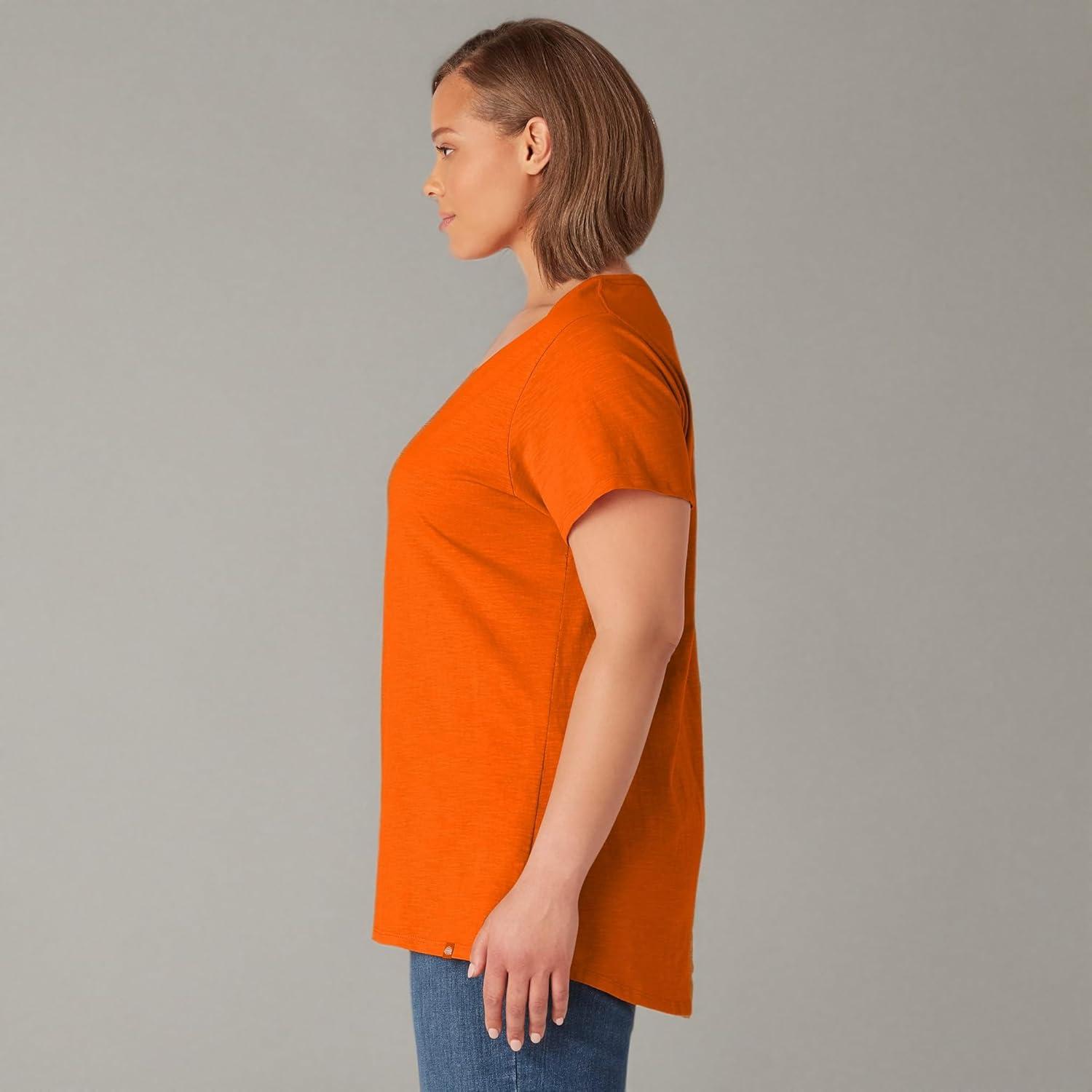 Dickies Womens Women’s Plus Short Sleeve V-Neck T-Shirt(Scarlet Ibis)