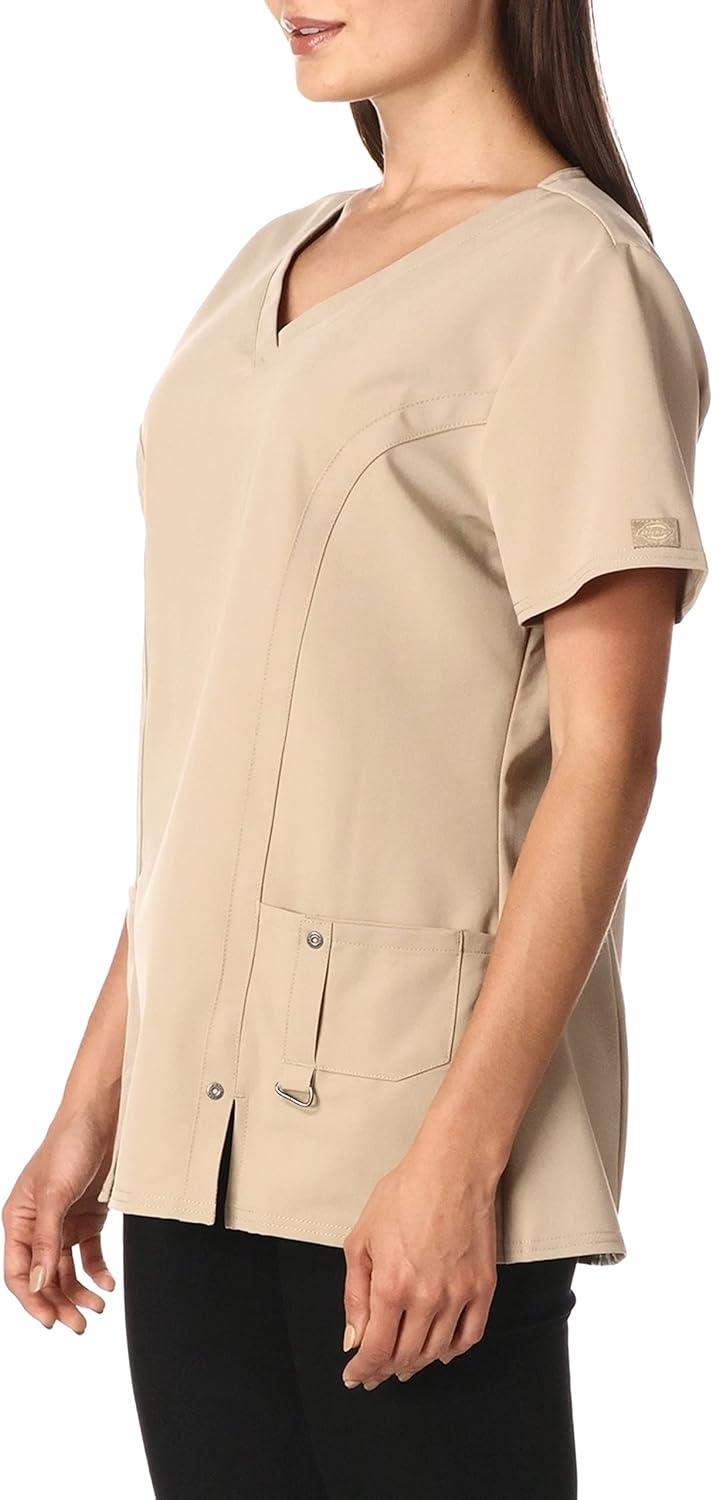 Dickies Xtreme Stretch Women Scrubs Top V-Neck 82851(Dark Khaki)