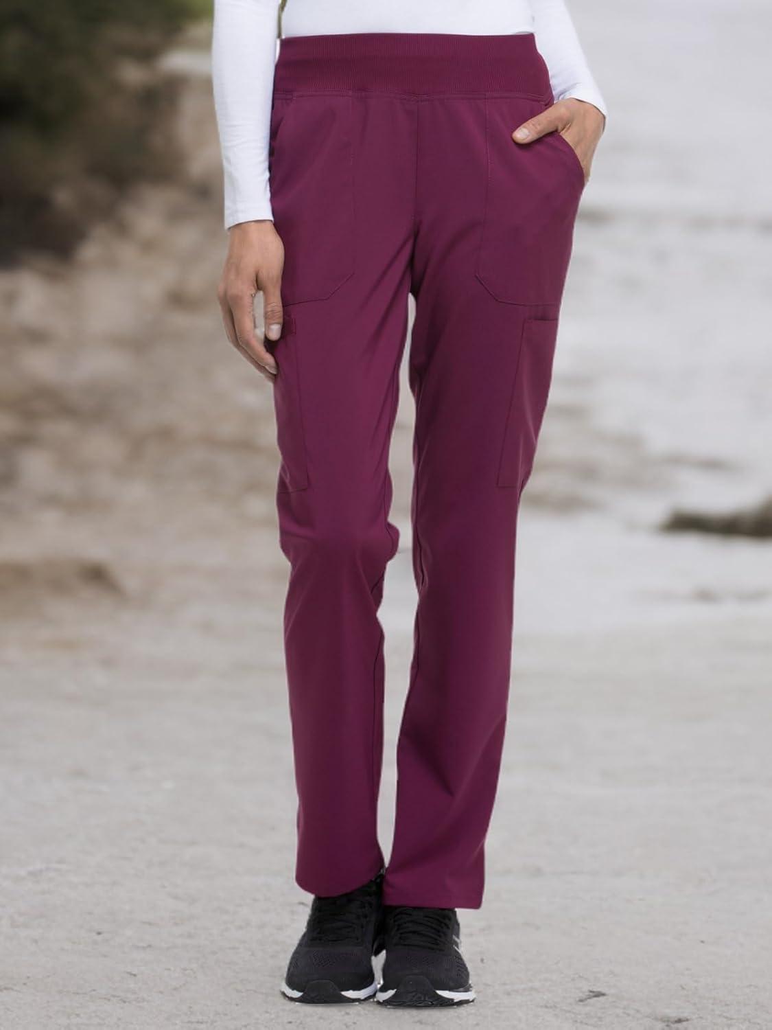 EDS Essentials Scrubs for Women, Yoga-Inspired Pull-On Pant with Four-Way Stretch and Moisture Wicking DK005(Wine)