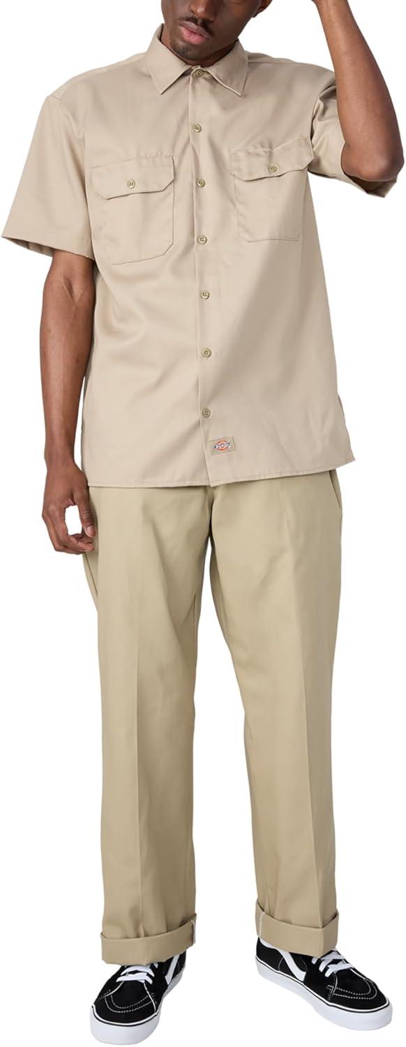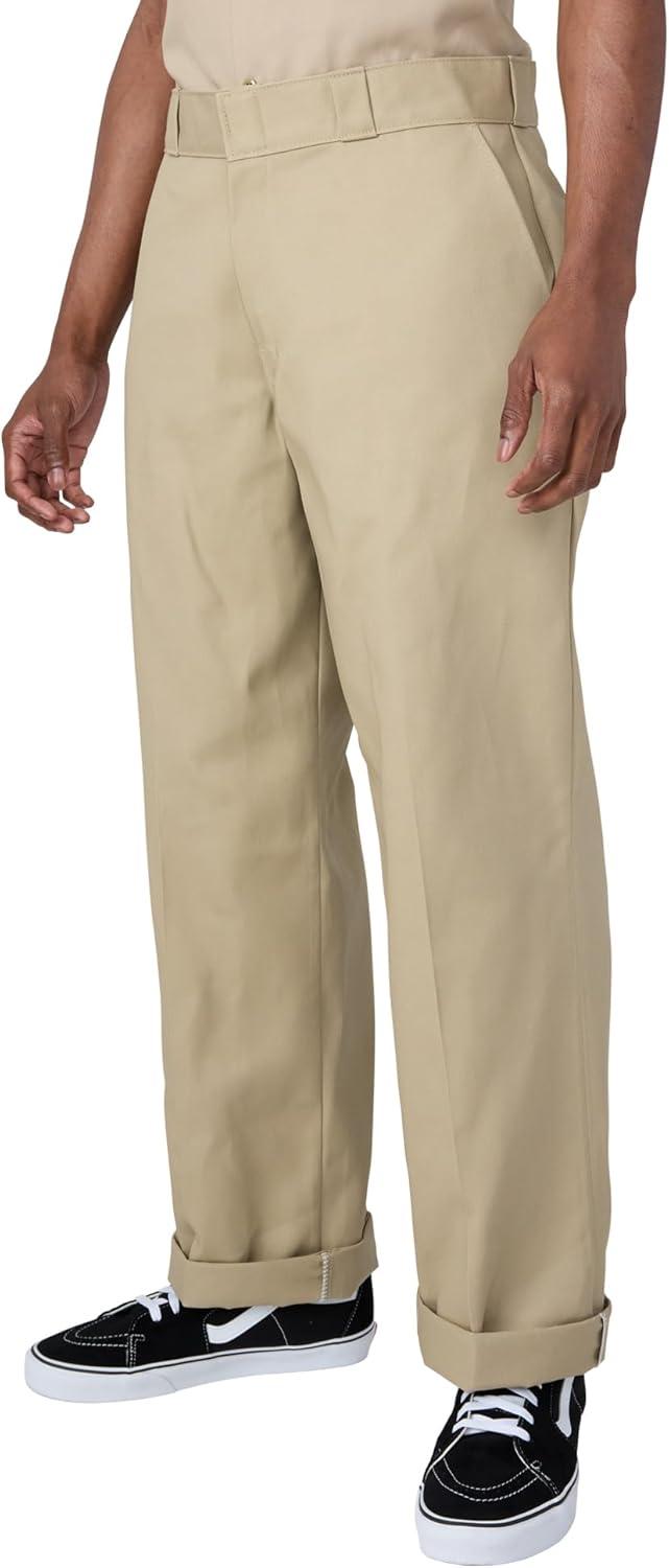 Our Men's Original 877 Loose Fit Work Pants are designed to be timeless and functional. These men's pants combine a loose fit with a high-rise waist and straight leg that tapers slightly at the hem. Made of the durable signature twill we're known for, these pants will soften with wear. The pants are equipped with reinforced seams, welt back pockets, and wide-tunnel belt loops. Size up if these are your first pair of quality Dickies work pants.